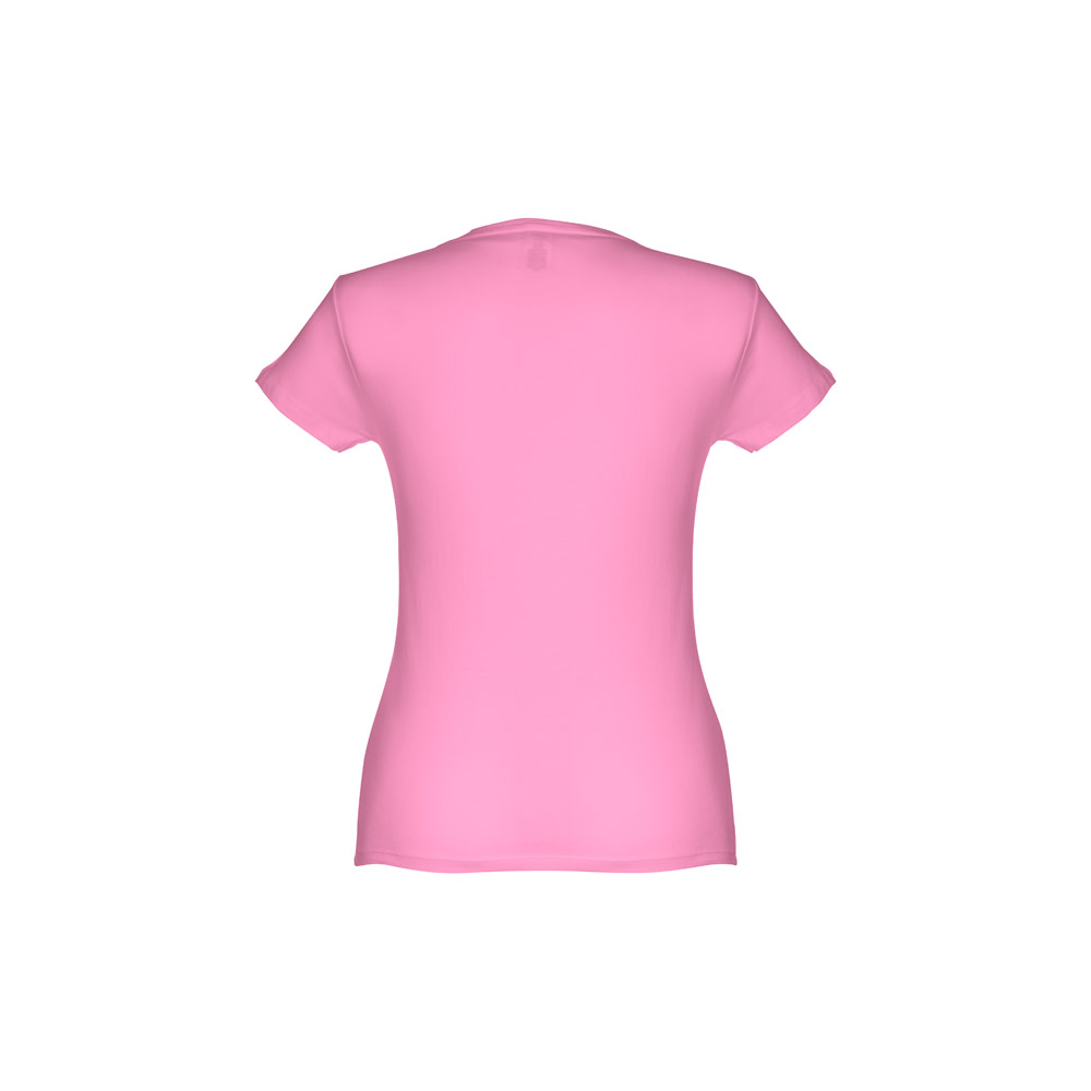 Damen T-Shirt aus 100% Strickjersey und Baumwolle (150g / m²) mit kardiertem Baumwollfaden, tailliert. Dieses hat einen dünnen Jersey-Kragen mit Satin-Verstärkungsband und eine Doppelnaht an Ärmeln und Saum. Bei der Farbe 183 bestehend aus 90% Baumwolle und 10% Viskose und Farbe 196 bestehend aus 98% Baumwolle und 2% Viskose. Größen: S, M, L, XL, XXL