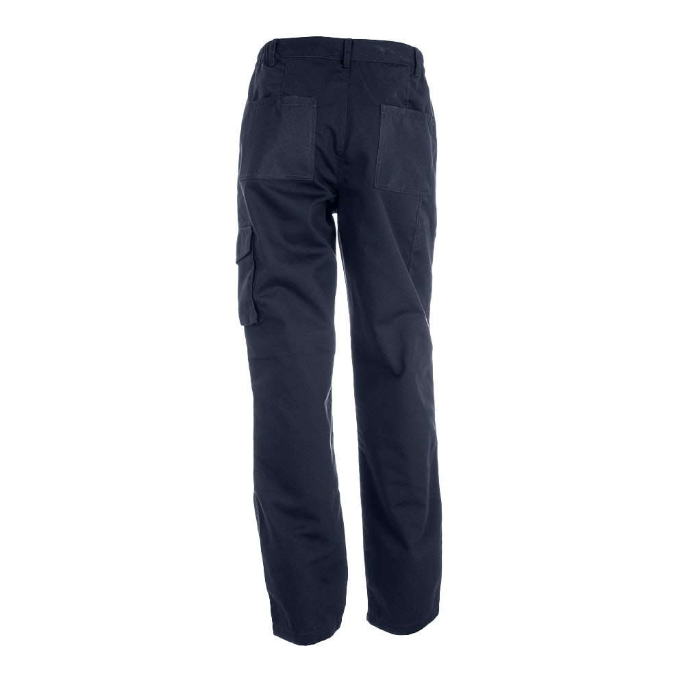 Herren Arbeitshose aus 98% Baumwolle und 2% Elasthan (240g / m²). Diese Hose hat 6 Taschen: 2 seitliche Reißverschlusstaschen, 2 Vordertaschen und 2 Hintertaschen. Bund mit einem seitlichen und elastischen Band. Größen: XS, S, M, L, XL, XXL