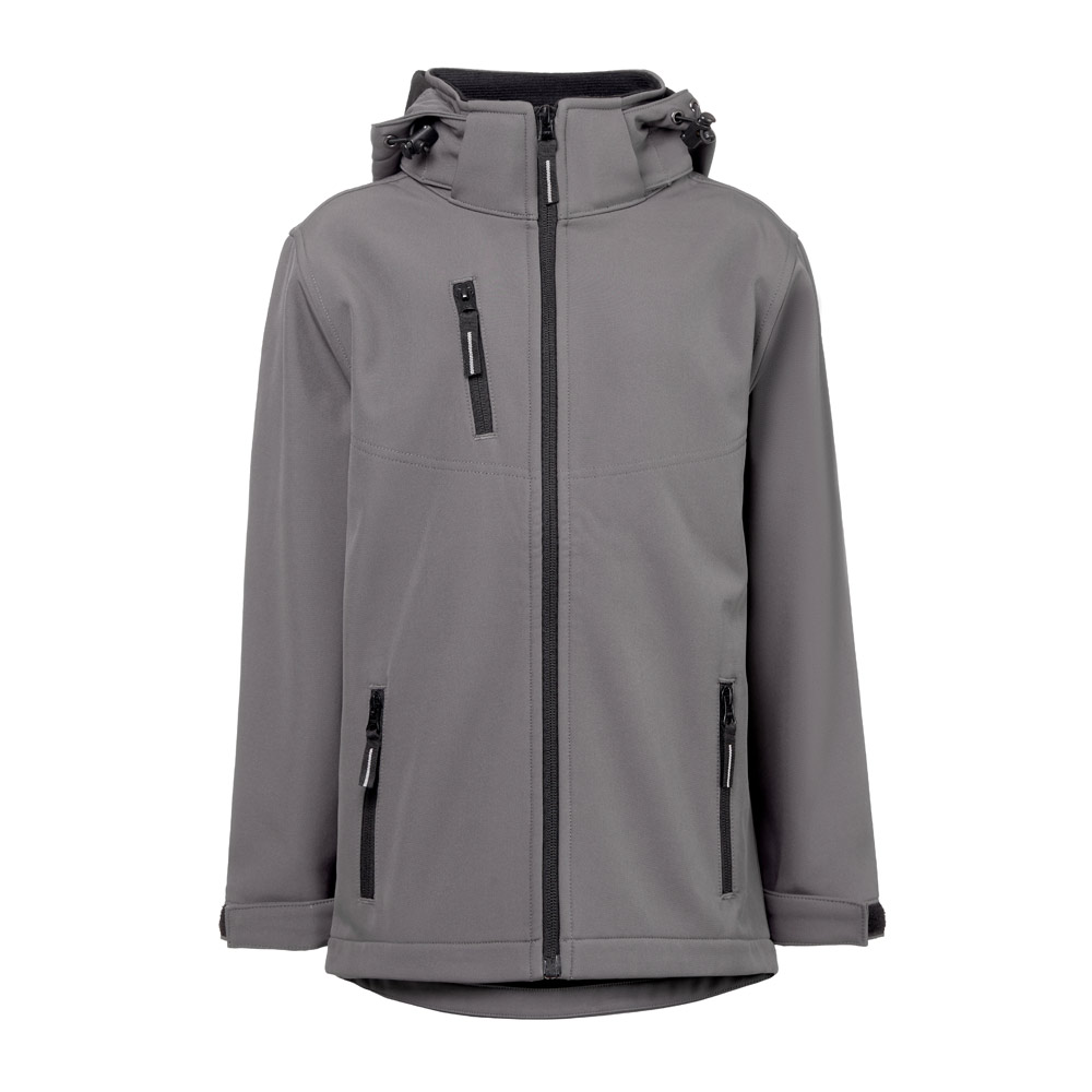 Sofschelljacke für Kinder aus 96% recyceltem Polyester-Softshell und 4% Elastan (280 g / m²), mit zwei Schnürsenkeln und wasserabweisendem Futter. Mit Fleece gefütterte Jacke (100% recyceltes Polyester) mit 2 Fronttaschen und einer schrägen Brusttasche, beide mit Reißverschluss. Abnehmbare und verstellbare Kapuze mit Kordelzug und selbstklebendem Reißverschlussband zur Anpassung an den Kragen. Vordere Öffnung mit YKK®-Reißverschluss - eine Marke, die moderne Ausrüstung und hohe Qualitätskontrolle einsetzt. Verstellbare Manschetten mit selbstklebendem Verschlussband. Abgerundeter unterer Rücken. Größen: 4, 6, 8, 10, 12