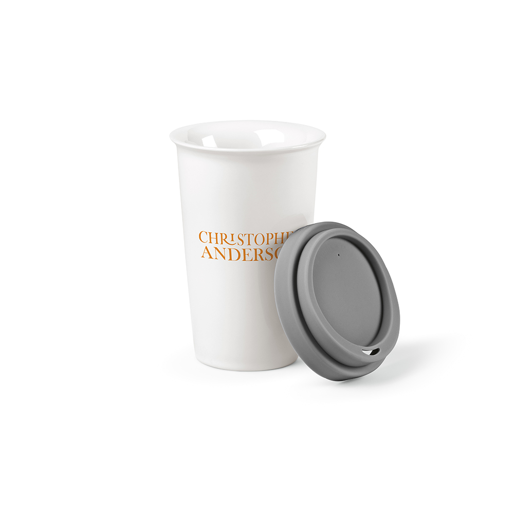 Entdecken Sie Tagus, den Reisebecher aus Keramik, 330 ml (290 ml netto), doppelwandig mit farbigem Silikondeckel. Perfekt für den morgendlichen Kaffee oder Kräutertee unterwegs – hält Getränke bis zu 2 Stunden heiß und 6 Stunden kalt. Trinken, verschließen und den Moment genießen. Einzeln verpackt in einer Kraftkartonbox.