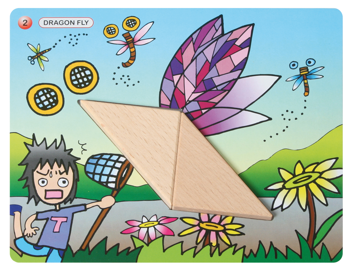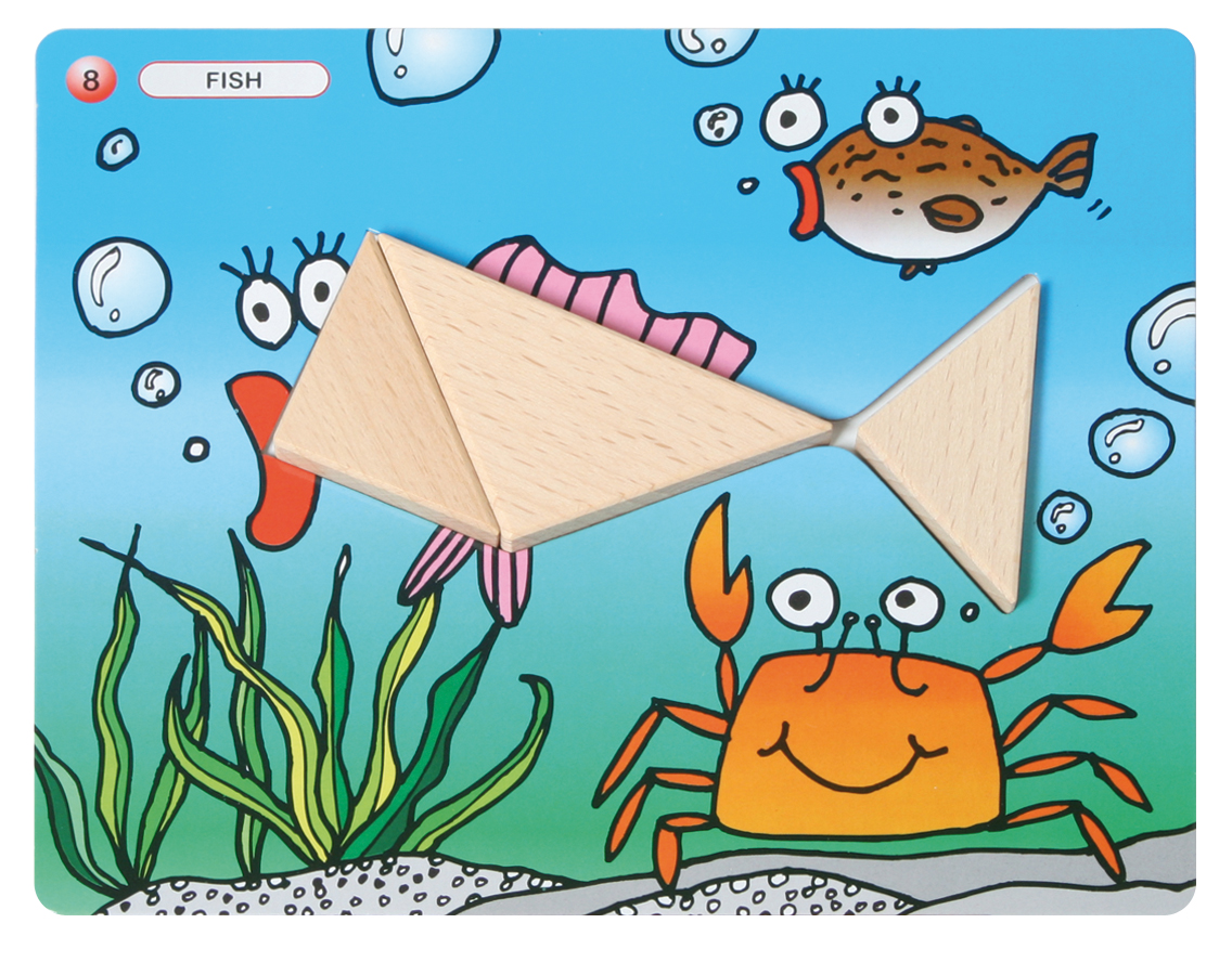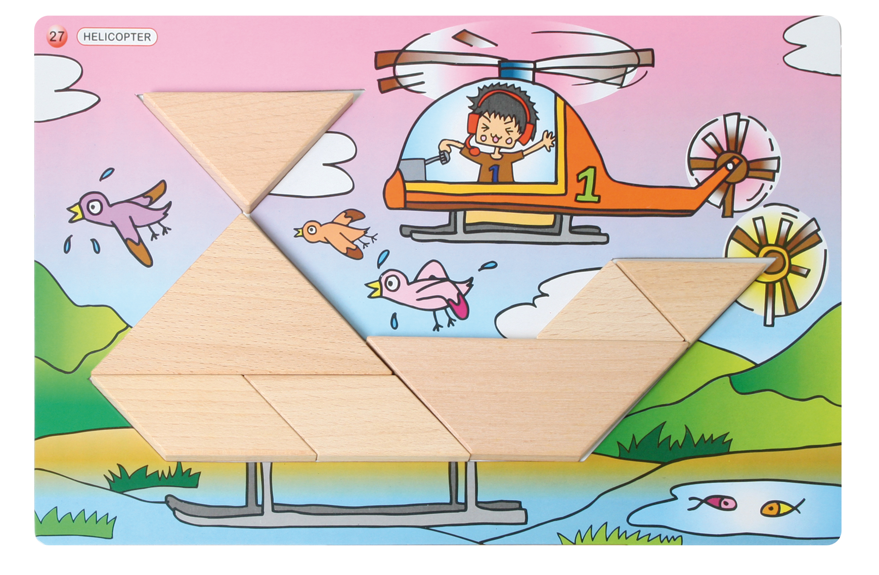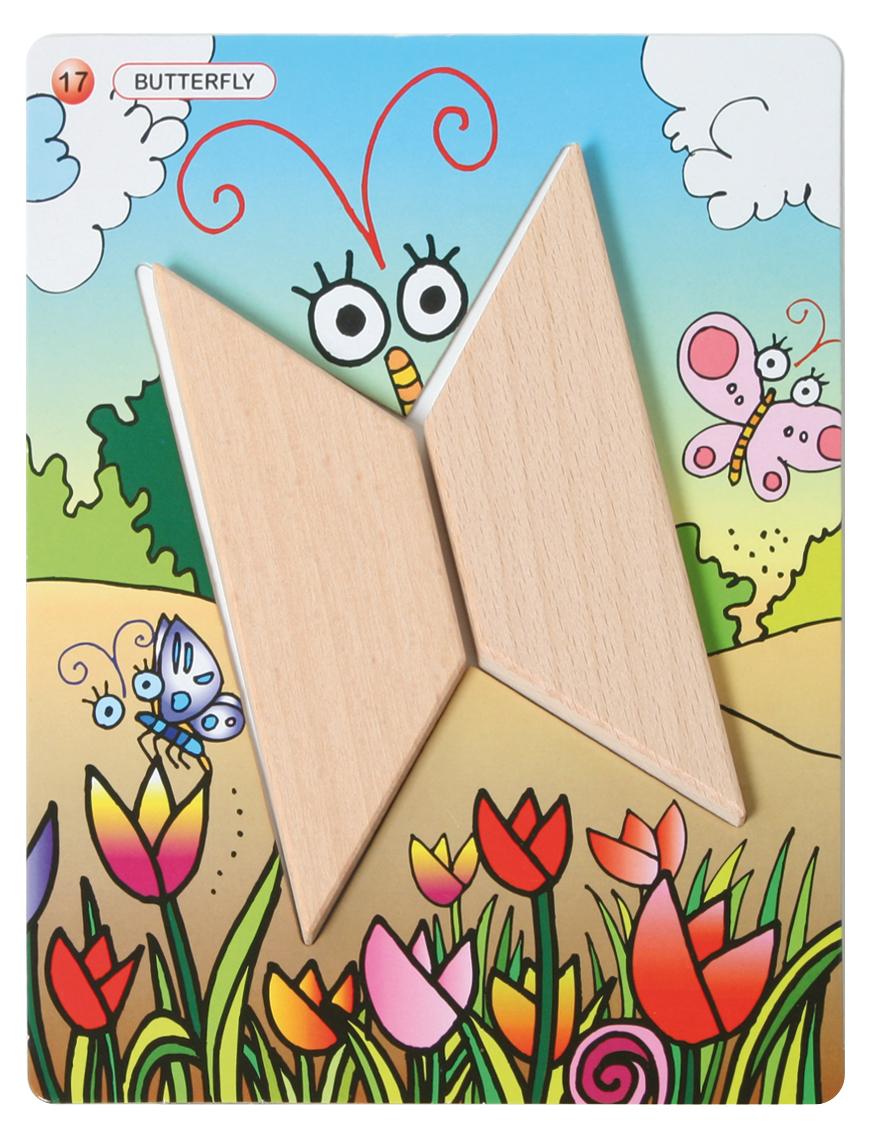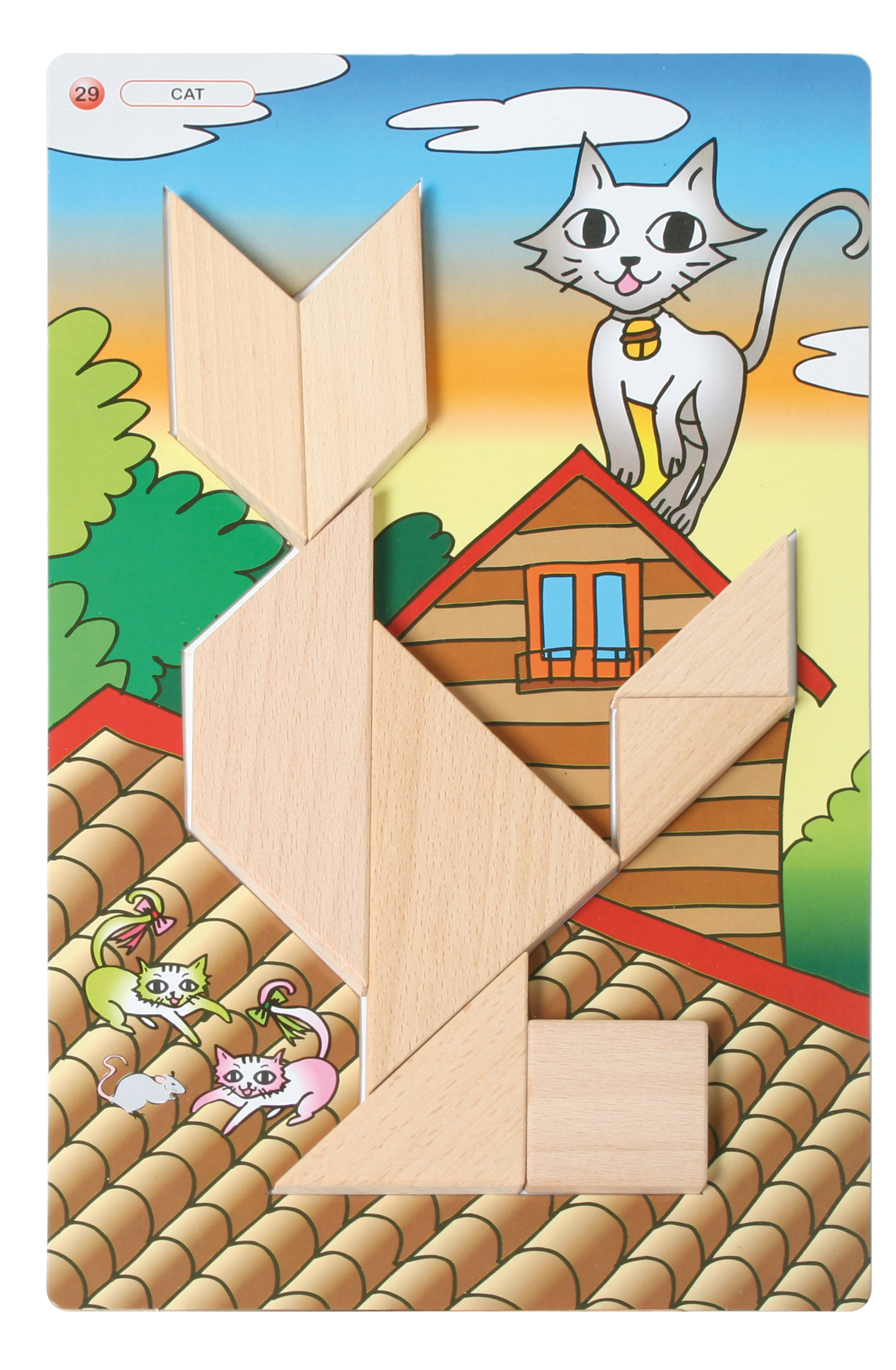 Lehrreiche Spielidee für die ganze Familie von 3 - 99! Inhalt: 30 Bildvorlagen aus Karton und zwei Sets Tangram-Spielsteine aus Holz. Es gilt, in die Aussparung der Bildvorlagen die passenden Tangram-Steine zu legen.