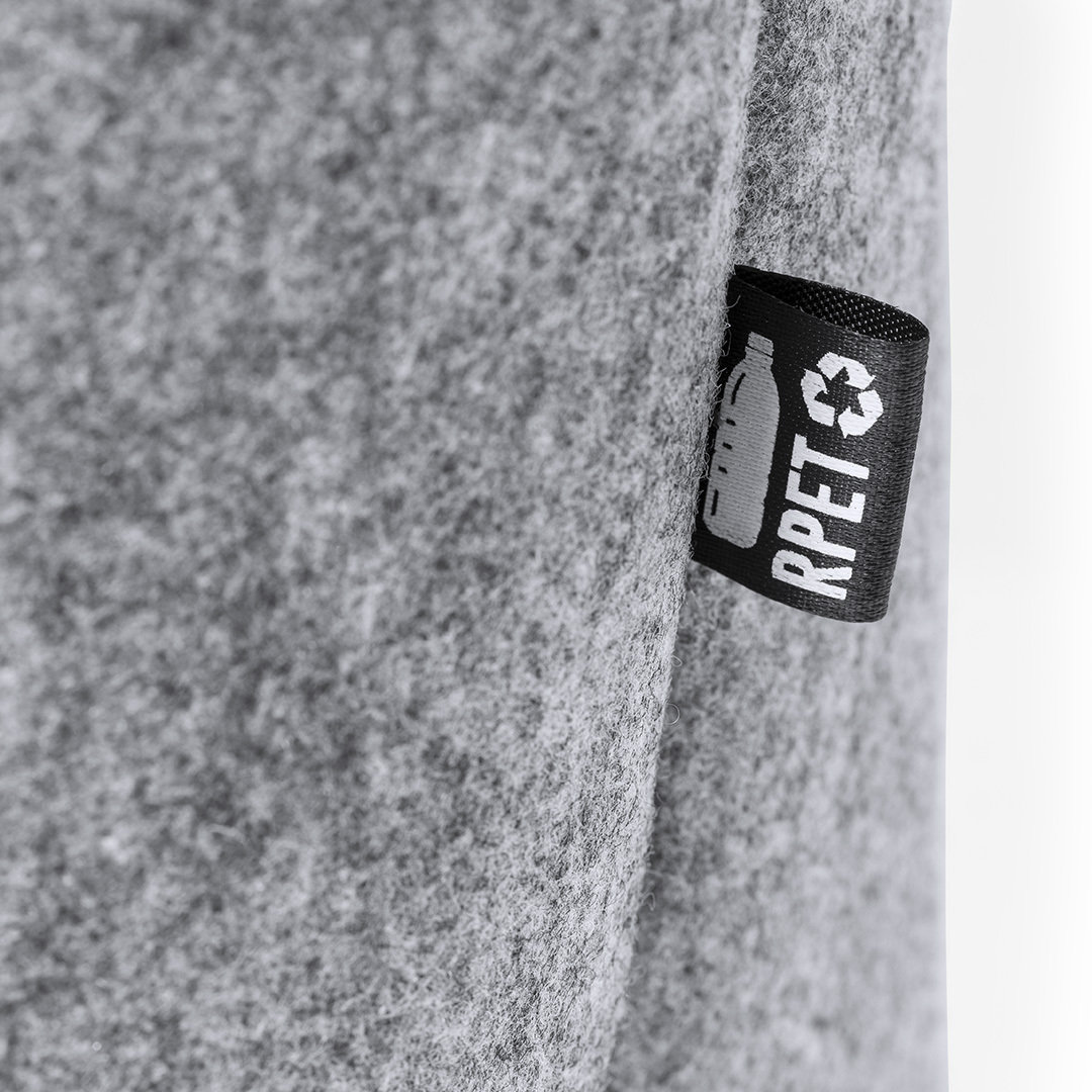 Linie "Natur" Tasche aus widerstandsfähigem, recyceltem RPET-Filz. Das Ergebnis der Kombination der Recyclingprozesse von Kunststoffen mit der jahrtausendealten Technik der Filzherstellung ist ein Öko-Trendmaterial, das nicht nur recycelt, sondern auch wiederverwertbar ist. Rechteckiges Design, mit Zwickel am Boden, extra langen und extra breiten verstärkten Griffen (70 x 3,5 cm). Widerstandsfähigkeit bis zu 6 kg, mit RPET-Emblem auf dem Außenetikett.