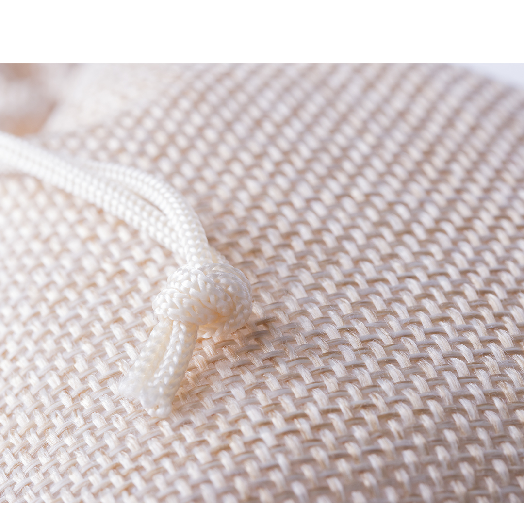 Origineller Polyesterbeutel in Naturfarbe mit farblich passenden Verschlussschnüren. Erhältlich in einer Vielzahl von Farben.