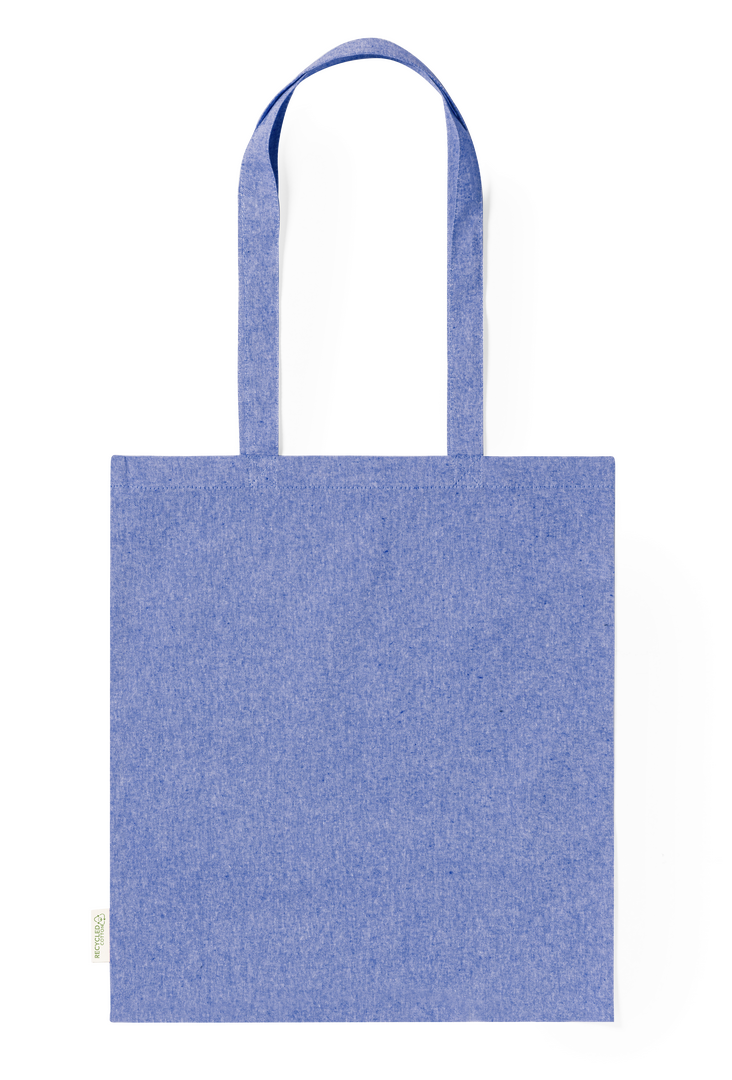 Tasche aus recyceltem Baumwollmaterial 140g / m2. GRS-Zertifizierung (Global Recycled Standard) die die recycelte Herkunft des für die Herstellung des Produkts verwendeten Materials garantiert. Genäht, mit 70 cm langen, verstärkten Griffen und in einer breiten Farbpalette erhältlich. Widerstandsfähigkeit bis zu 8 kg, einschließlich Etikett aus recycelter Baumwolle.