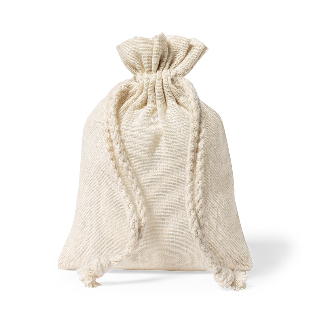 Beutel der Linie Natur, Größe 10 x 14 cm. Mit Kordelzugverschluss und aus Baumwollmaterial von 105g / m2. Einfaches Branding und speziell für kleine Objekte entwickelt.