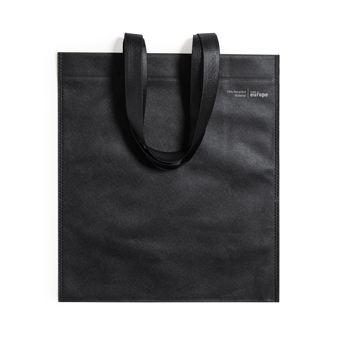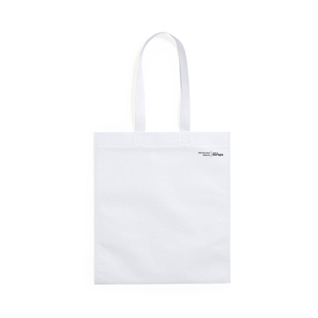 Nature Line Tasche aus recyceltem Non-Woven 70g / m2. In Europa hergestellt, mit heißversiegelter Oberfläche, kurz Griffen und Öko- / Made-in-Label auf der Tasche.