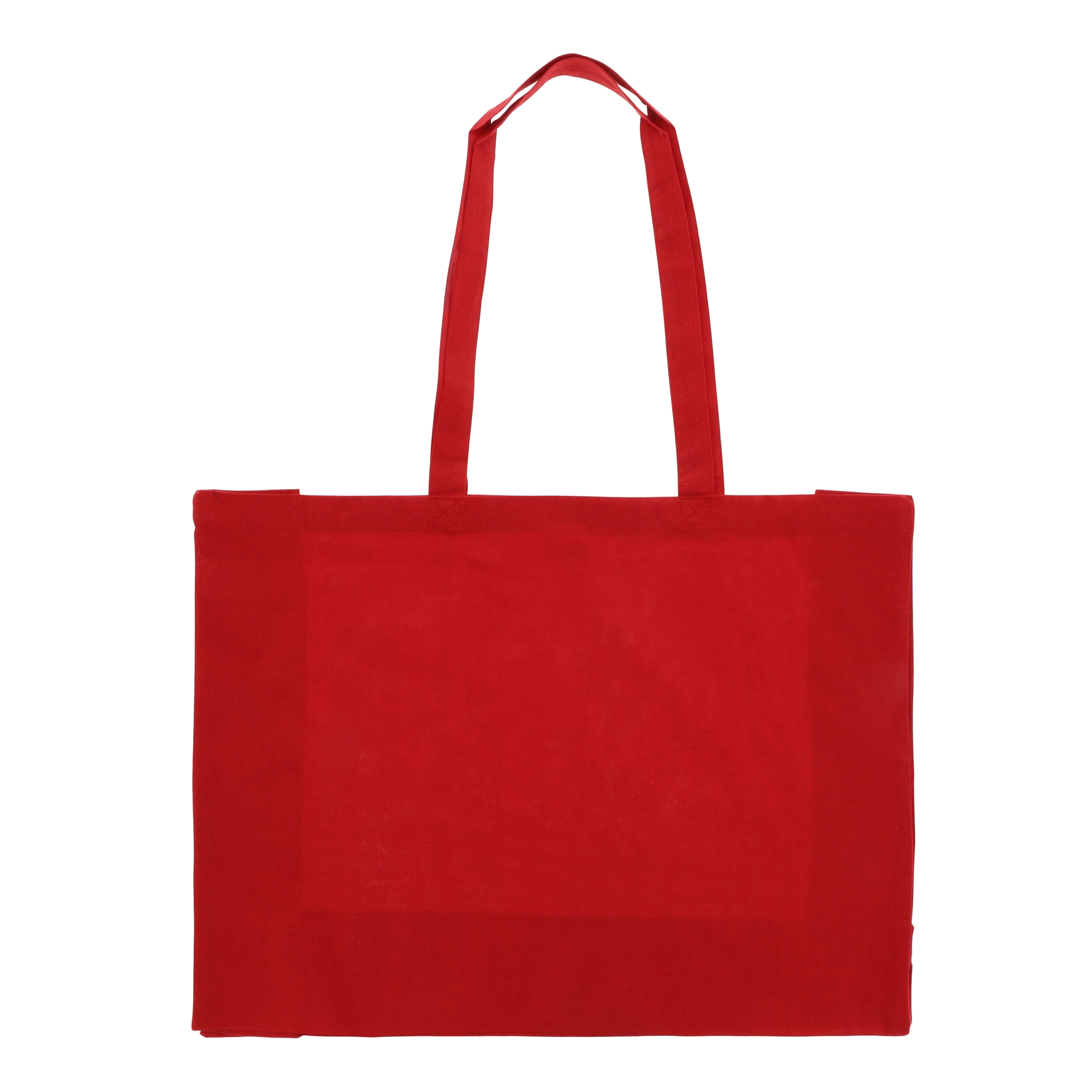 Tasche ist aus recycelter Baumwolle mit einer Bodenfalte. Der bessere Weg für einen nachhaltigen Transport Ihrer Sachen.