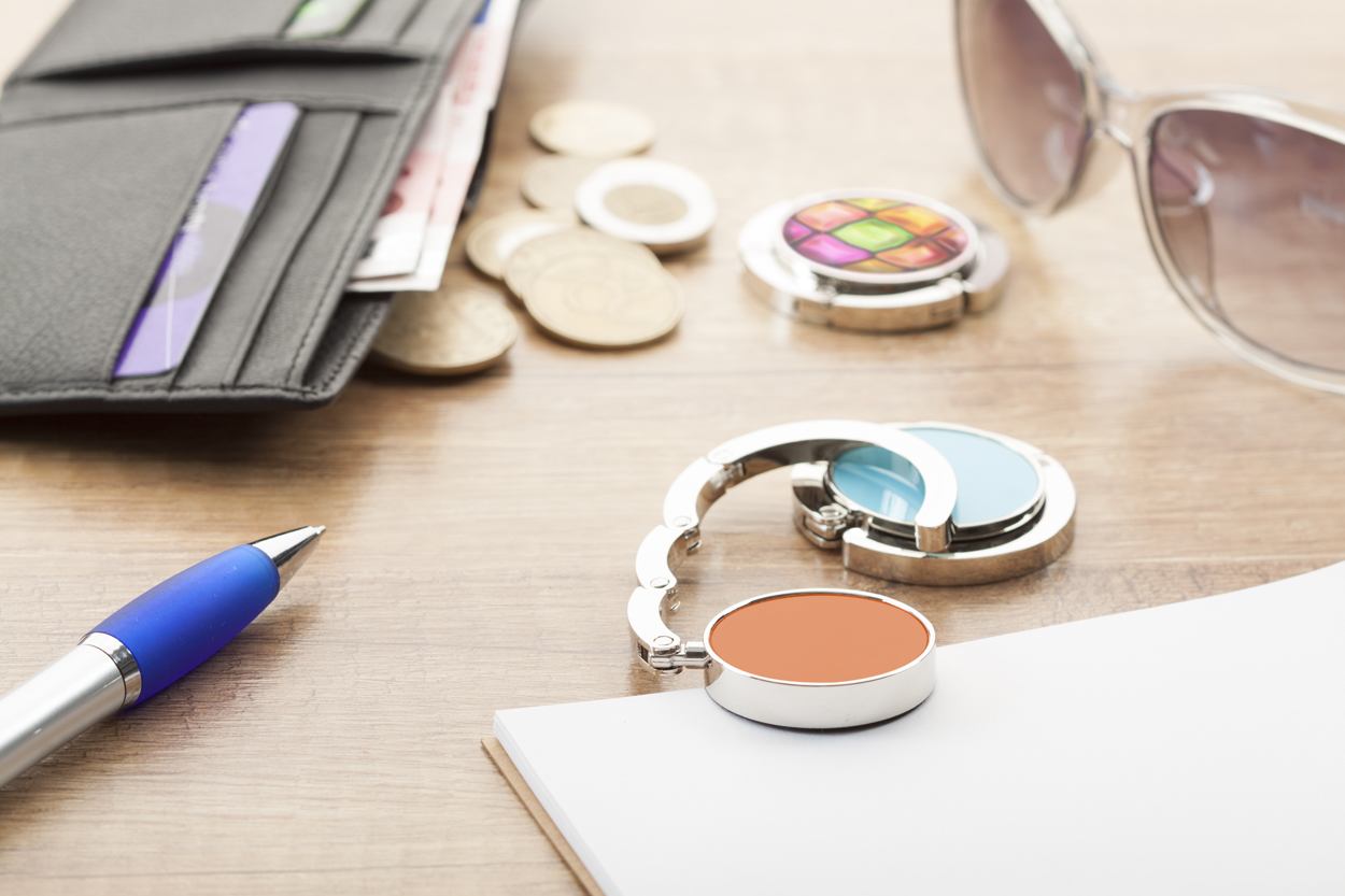 Taschenhalter aus Metall. Lieferung in einer schwarzen Geschenkbox.