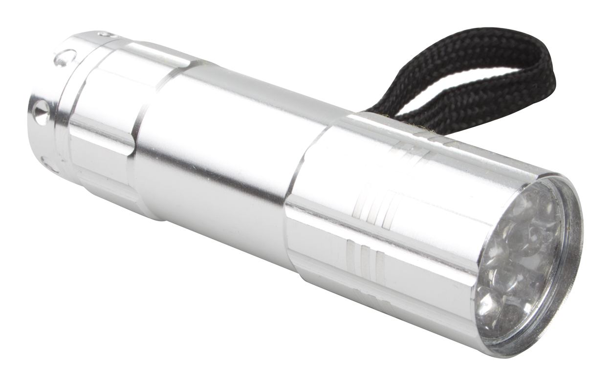 Taschenlampe aus Aluminium mit 9 LED's und Handschlaufe. Inkl. Batterien (3 x AAA).