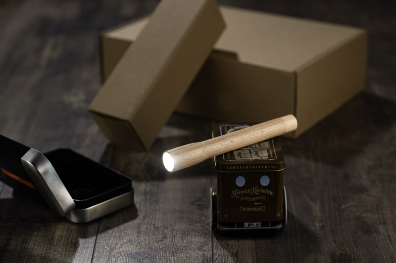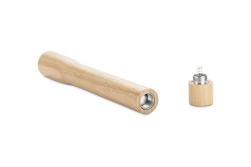 Die TIMBERA Taschenlampe ist aus Buchenholz gefertigt und mit einer 5 W Lichtquelle ausgestattet. Sie wird mit drei AAA-Batterien betrieben (nicht im Lieferumfang enthalten) und ist für den täglichen Gebrauch zu Hause, bei der Arbeit oder im Freien geeignet. Das Holzgehäuse verleiht ihr einen soliden Charakter und bietet einen guten Hintergrund für das Branding eines Logos. Die schlichte Form und die handliche Größe machen ihn zu einem praktischen Werbegeschenk, das immer zur Hand sein wird.