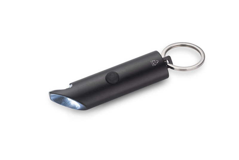 LATARO ist eine Taschenlampe mit Flaschenöffner und Schlüsselanhängerfunktion. Hergestellt aus recyceltem Aluminium.