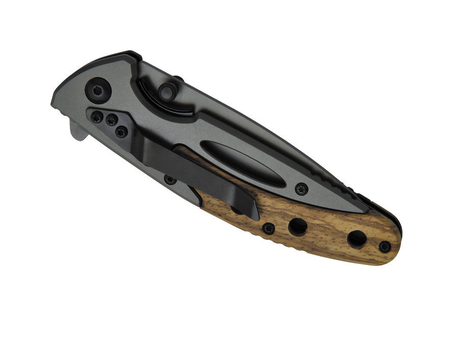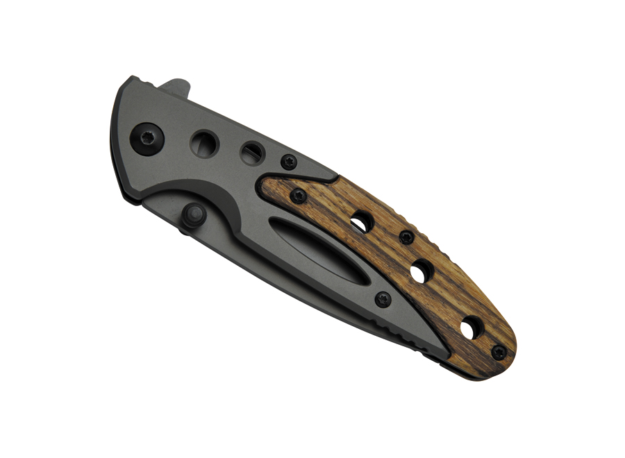 Klappbares Messer mit Klinge aus rostfreiem 420er Edelstahl mit Titanbeschichtung. Montage mit Torx Schrauben. Griff aus Zebranoholz. Einhändiges Öffnen / Schließen mit einem Liner-Lock Sicherheitsmechanismus. Gürtelclip. Wird in einen meliertem grauen Etui aus RPET geliefert. Die Vorteile in Kürze: - Klinge aus 420er Edelstahl, die eine maximale Beständigkeit gegen Oxidation gewährleistet und ein einfaches Schärfen ermöglicht - Torx-Schrauben-Montage, um Reibung beim Öffnen zu reduzieren und die langfristige Funktionsfähigkeit zu erhalten. - Elegante Titanbeschichtung auf der Klinge für eine bessere Haltbarkeit. - Ein raffiniertes Sicherheitsverriegelungssystem namens Liner Lock, das zu den einfachsten zu bedienenden gehört. - Einhändige Öffnung für Links- und Rechtshänder. - Ein integrierter Gürtelclip für eine einfache und stets griffbereite Aufbewahrung. - Wird mit einem Etui aus RPET ( recycelte Verpackung) anstatt einer wegwerfbaren Kartonverpackung geliefert.
