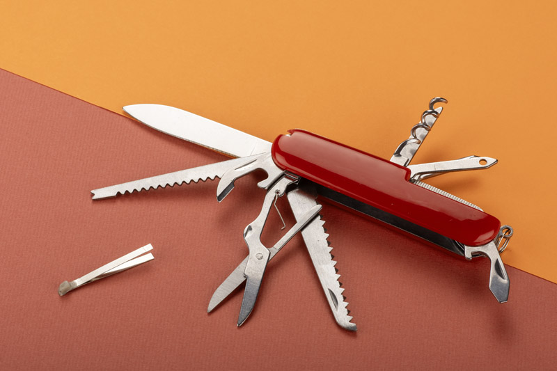 Das HIDI Taschenmesser mit einem roten Kunststoffgriff. Dieses Taschenmesser verfügt über alle wichtigen Funktionen wie Messer, Säge, Fischschaber, Schere, Dosenöffner, Flaschenöffner, Schraubendreher, Korkenzieher, Ahle und Lederlocher.