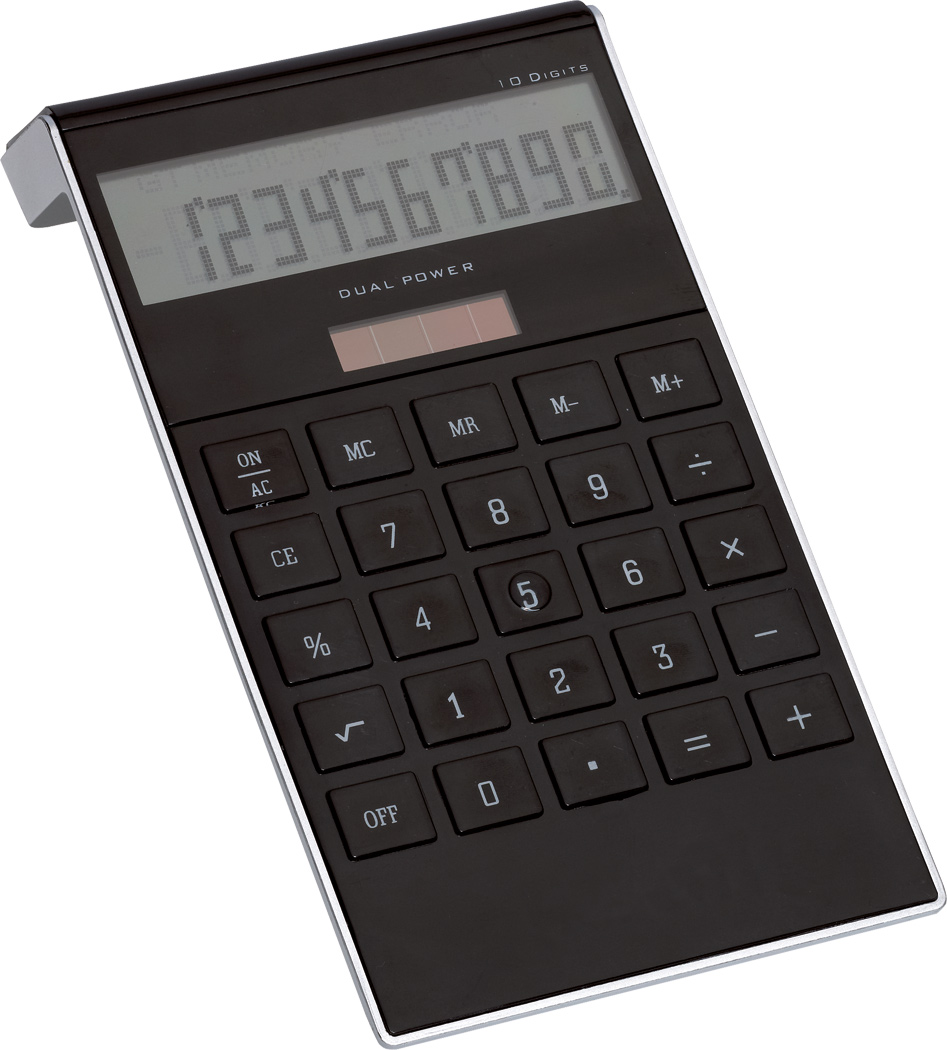 Taschenrechner DOTTY MATRIX in edler Hochglanz-Optik: mit Dual-Power und praktischem Aufsteller, gut lesbares 10-stelliges Dot-Matrix-Display, in Box