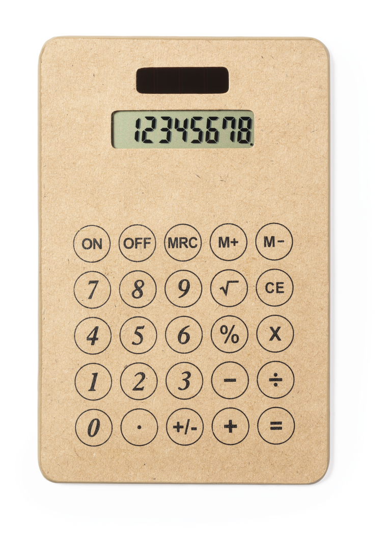 8-stelliger Naturlinienrechner. Hergestellt aus recyceltem Karton und solarbetrieben. LCD-Display und automatischer Abschaltmechanismus. Präsentiert in einer individuellen Kraft-Designbox.