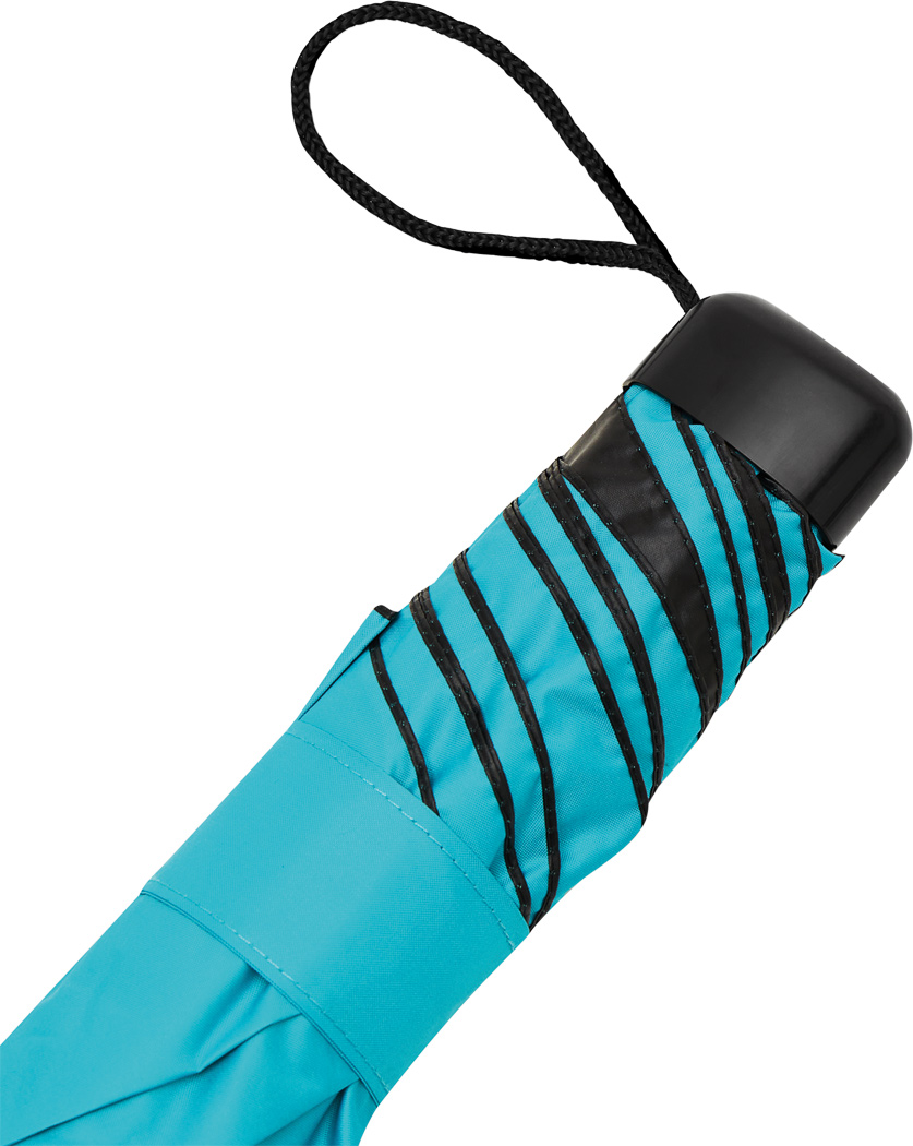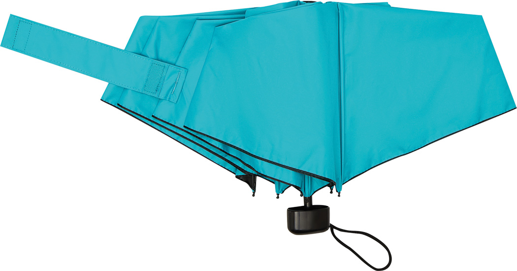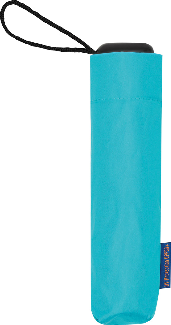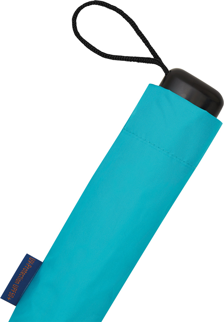 Taschenschirm SUNDANCE, mit UV-Schutz, in farblich abgestimmter Hülle: 3-teiliger Metallstock, Metall- / Fiberglasspeichen, schwarzer Kunststoffgriff mit Handschlaufe, Polyester-Pongee-Bespannung UV50+, innen schwarz beschichtet, breites Schließband mit Klettverschluss