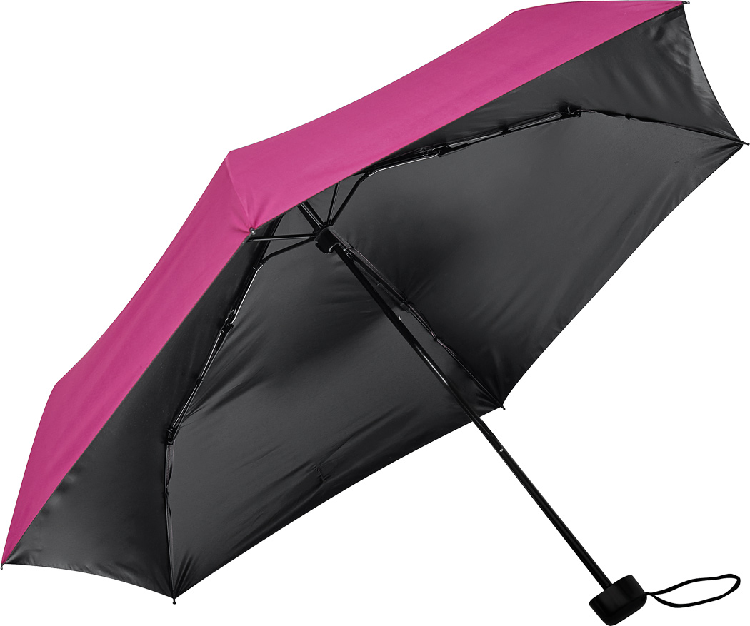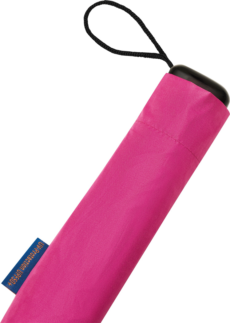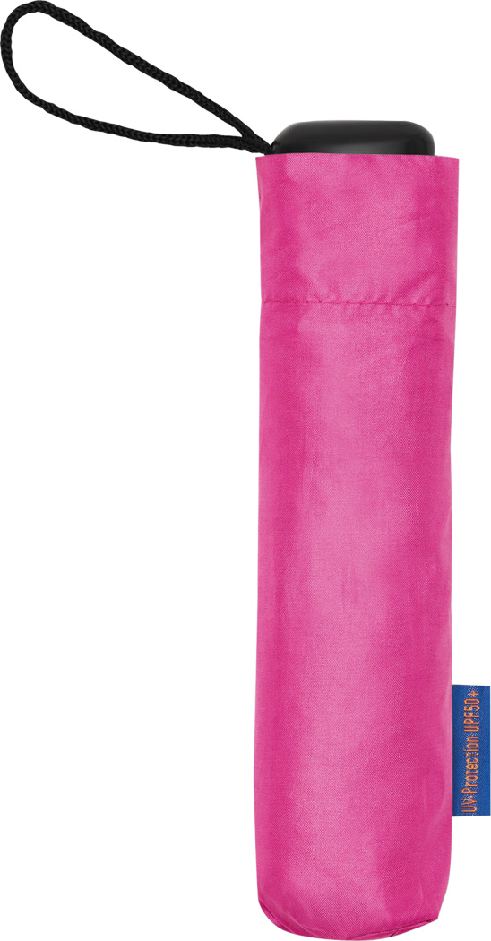 Taschenschirm SUNDANCE, mit UV-Schutz, in farblich abgestimmter Hülle: 3-teiliger Metallstock, Metall- / Fiberglasspeichen, schwarzer Kunststoffgriff mit Handschlaufe, Polyester-Pongee-Bespannung UV50+, innen schwarz beschichtet, breites Schließband mit Klettverschluss