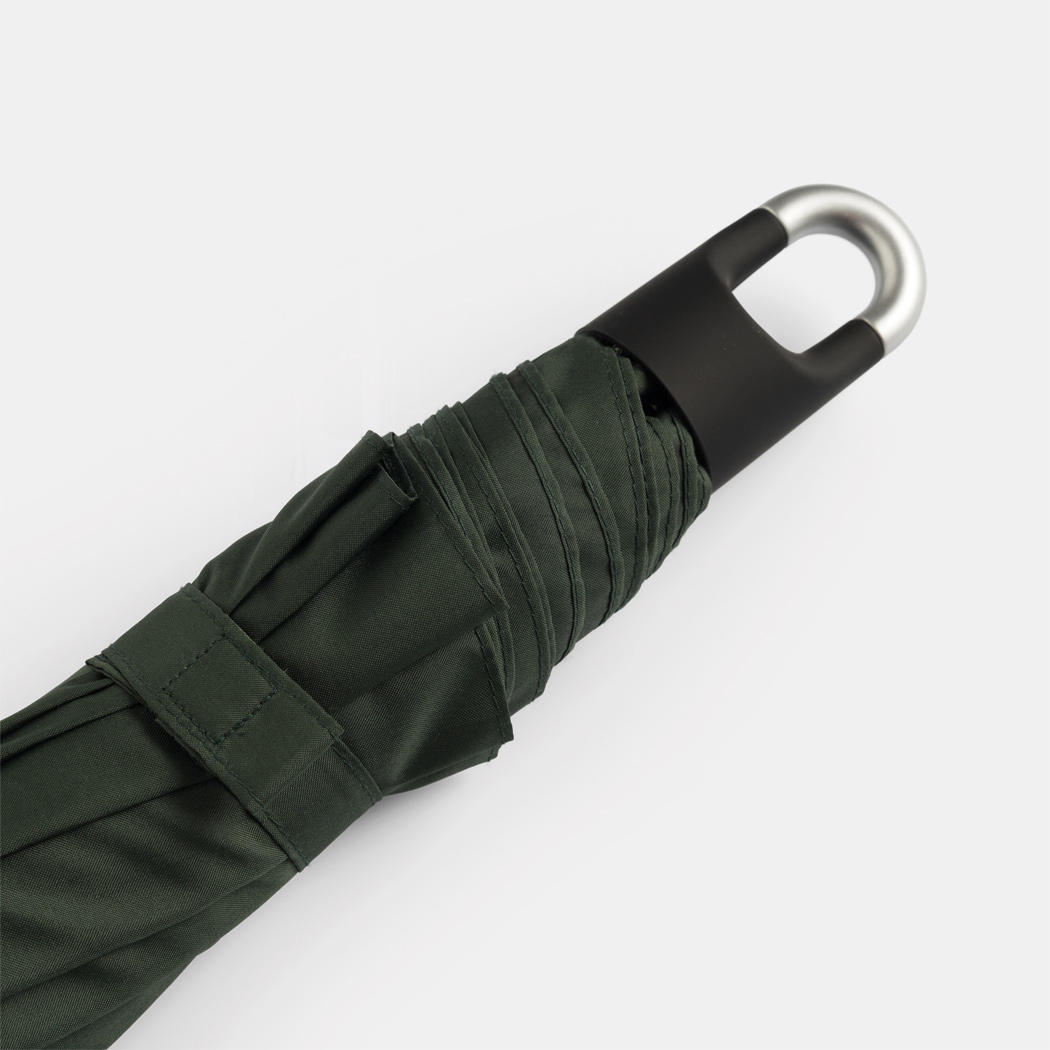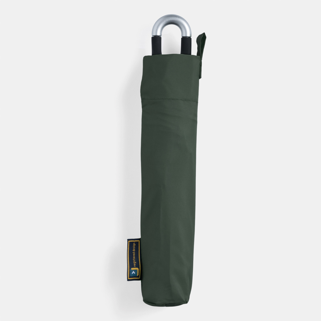Taschenschirm TWIST mit im Griff integrierter Aufhängefunktion: 204g-leichtes Gestell, 3-teiliger Aluminiumstock, Aluminium- / Fiberglasspeichen, Metalltips, gummierter Griff, Polyester-Pongee-Bespannung und -Hülle, Schließband mit Klettverschluss
