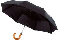 Pro-Discount entwickelt einen ultraleichten Promo-Taschenschirm mit einem edlen Pongee-Bezug in tiefem Anthrazit. Der Griff aus echtem Walnussholz erhält eine präzise Lasergravur mit dem Unternehmenslogo – ein dezentes Branding, das stilvoll und hochwertig wirkt. Dank der Automatik-Funktion lässt sich der Schirm mit einem einzigen Knopfdruck öffnen, was ihn ideal für den schnellen Einsatz im Geschäftsalltag macht.