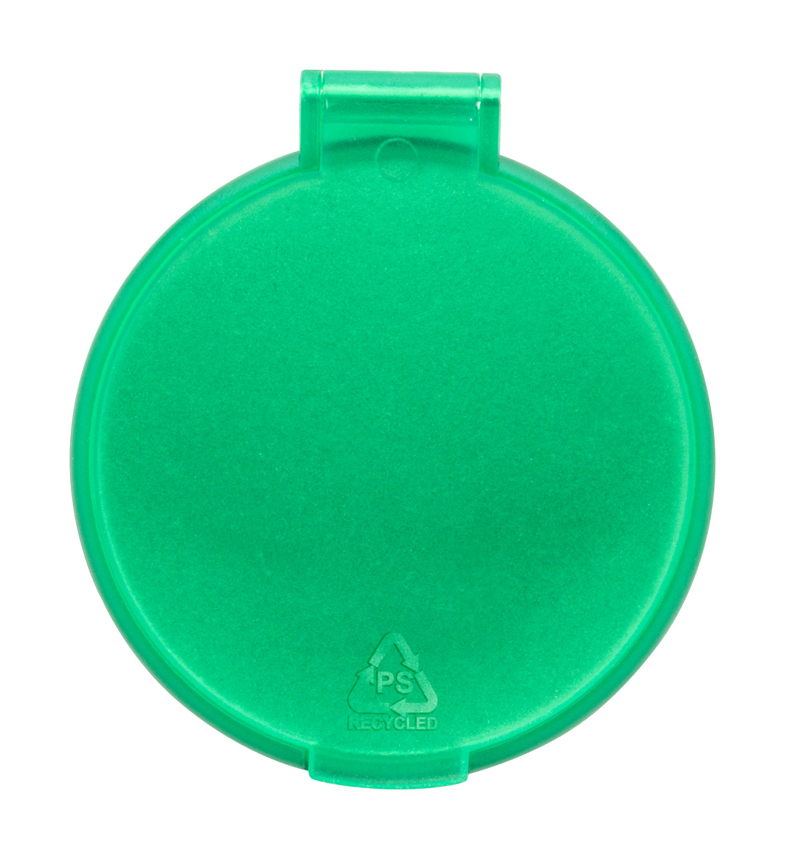 Runder Taschenspiegel in einem durchsichtigen Gehäuse aus recyceltem PS.