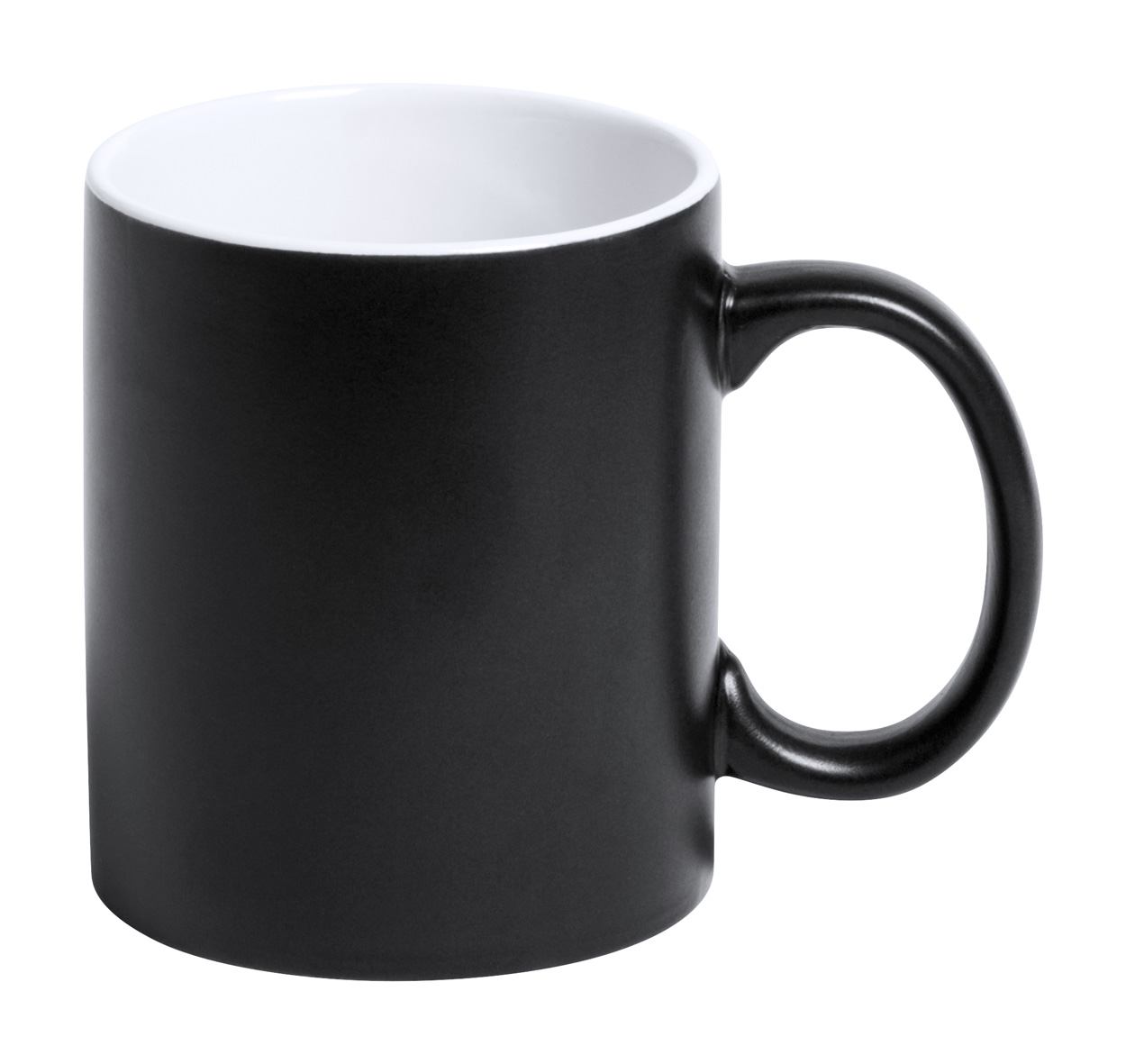 Farbige Keramiktasse mit weißer Innenseite und Zwischenbeschichtung für eine Gravur (Gravurfarbe wie Innenfarbe). Füllmenge: 350 ml. Einzeln in Geschenkbox.