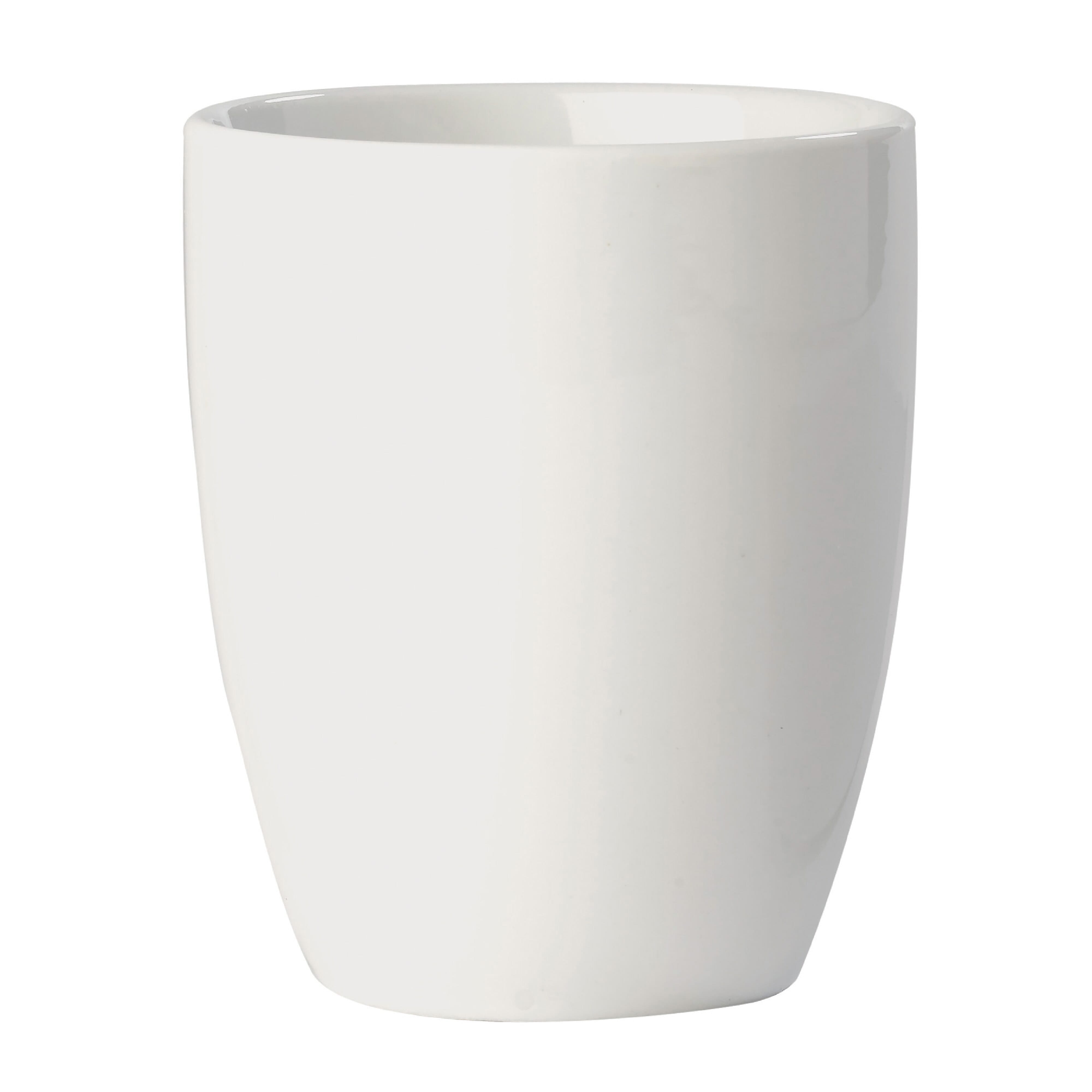 Hochwertiger weißer Porzellanbecher - Made in Europe. Konisches Modell mit großem Henkel.