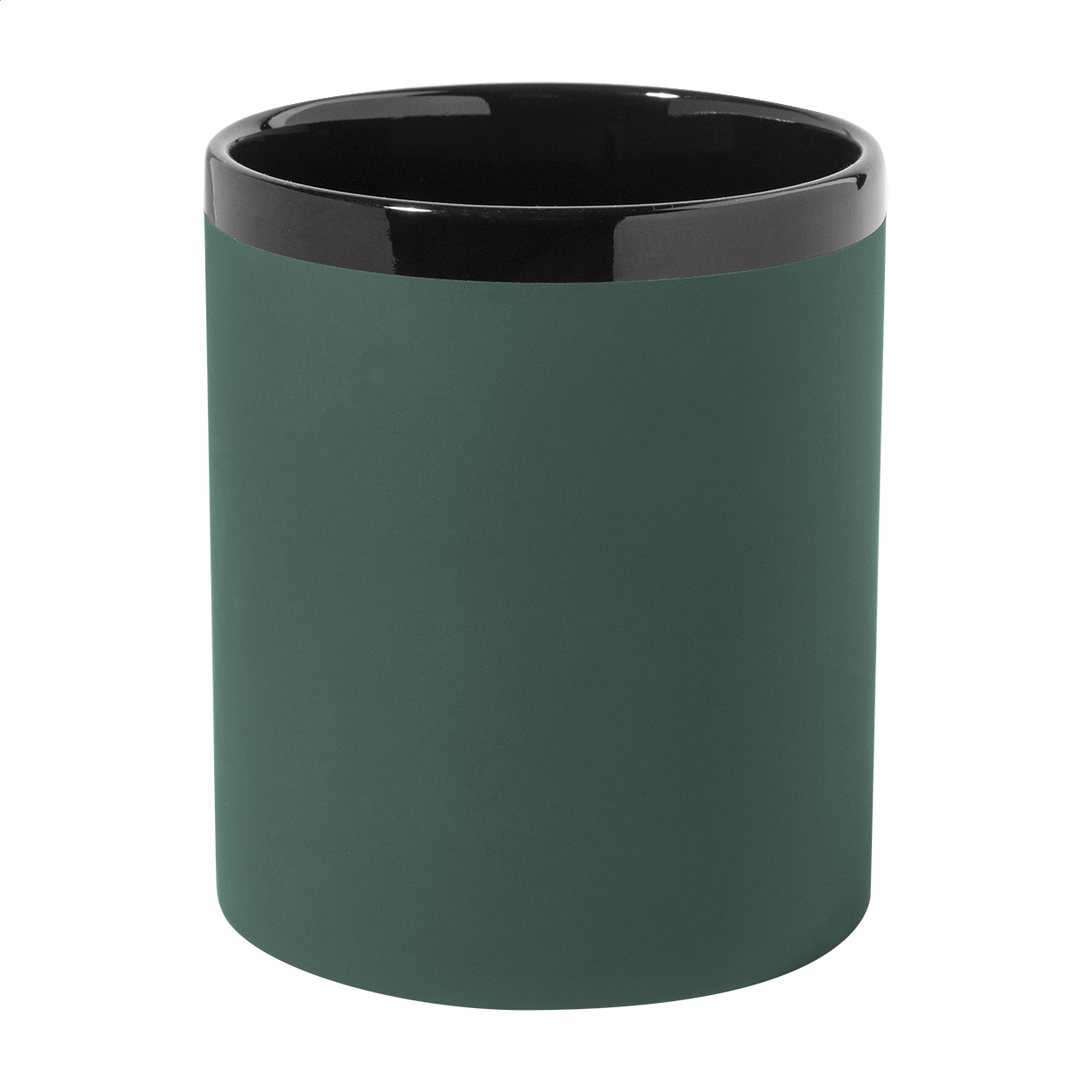 Keramiktasse mit gummierter Soft-Touch-Oberfläche und schwarzer Innneseite und Trinkrand. Mit Spezialbeschichtung für Gravuren (Gravurfarbe abgestimmt mit der Innenfarbe). Füllmenge: 300 ml. Einzeln in Kraftpapierbox.