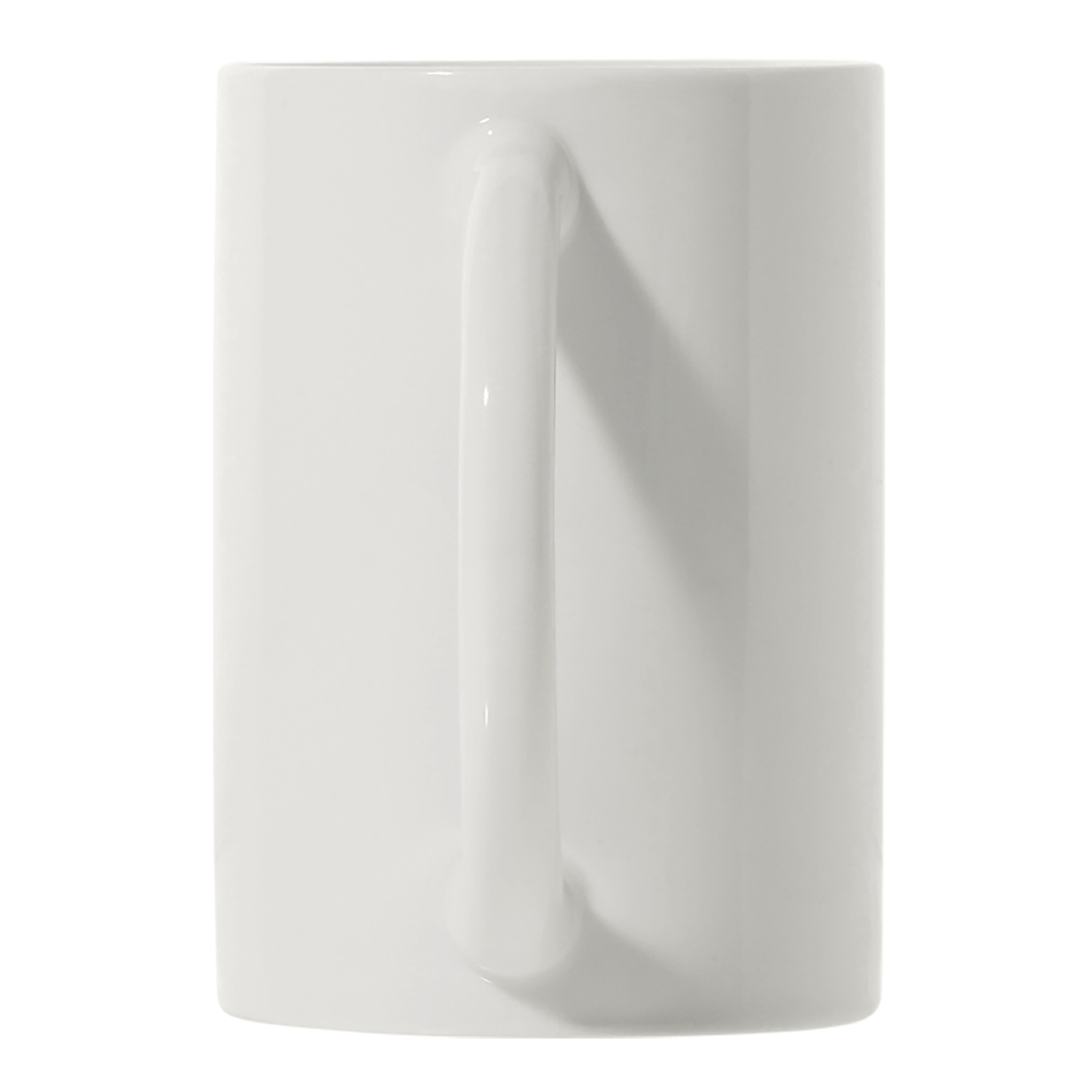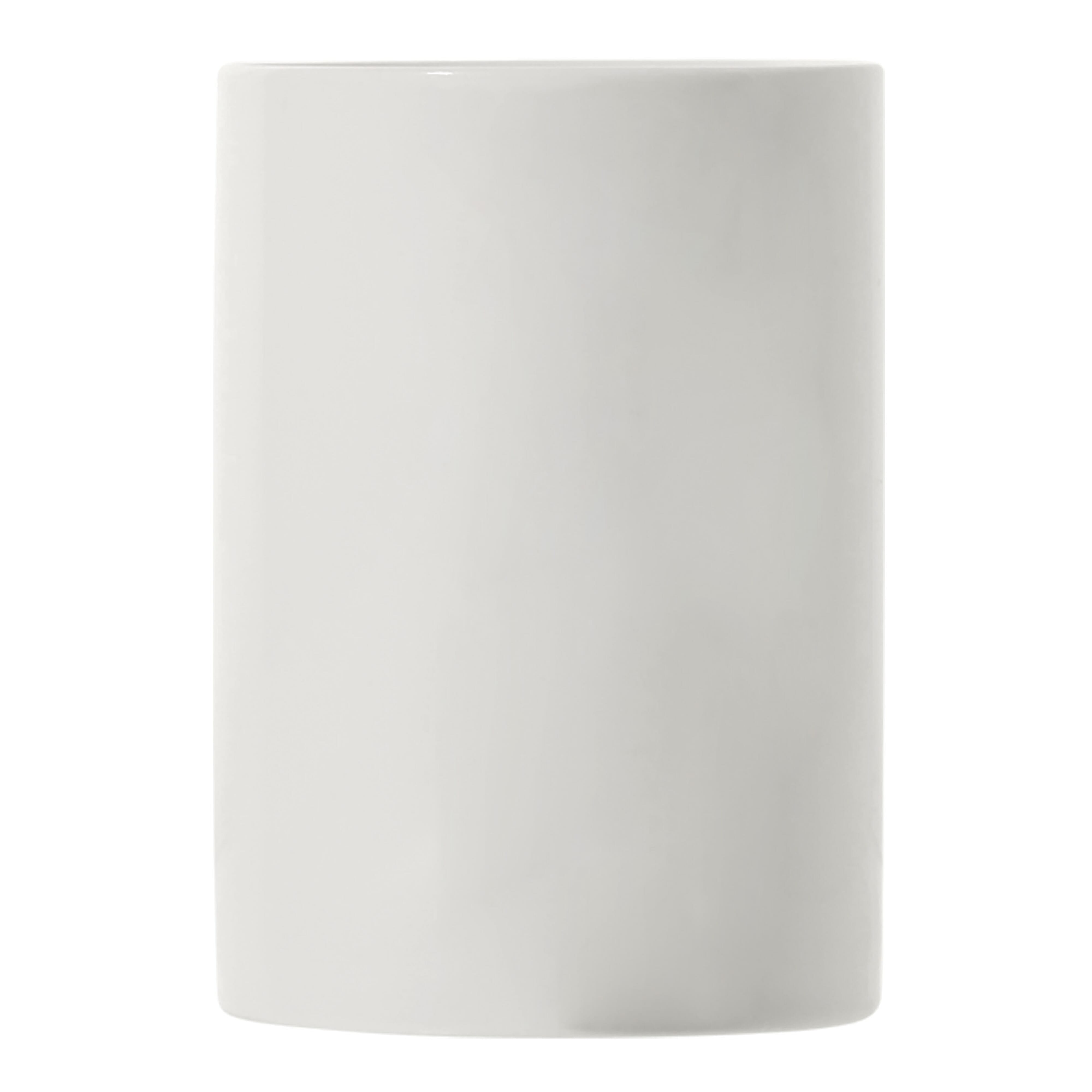 Hochwertiger weißer Porzellan Becher - Made in Europe. Hohes, schlankes Modell mit großem Henkel.