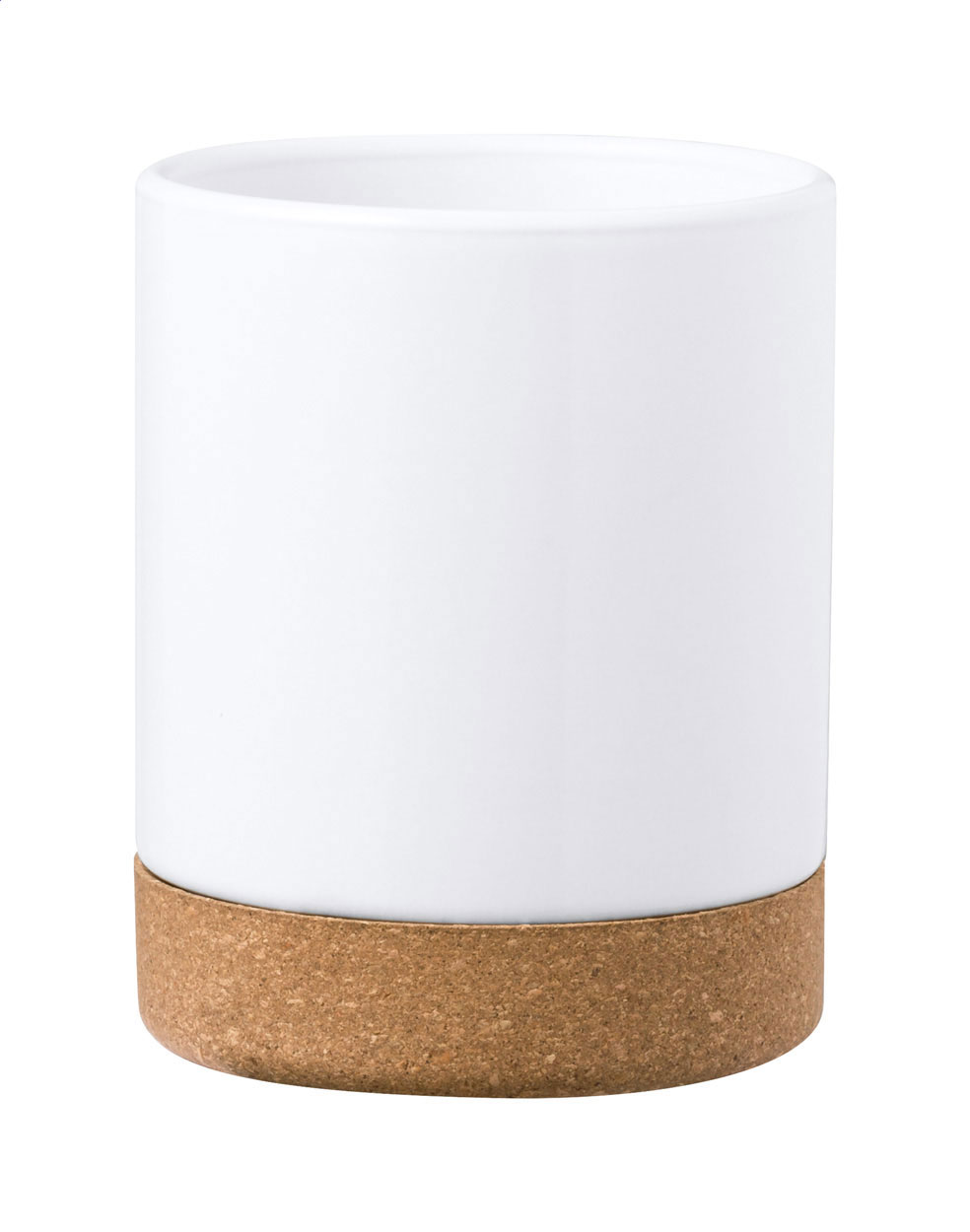 Keramiktasse für Sublimationsdruck mit Naturkorkboden, einzeln in Kraftpapierbox. Füllmenge: 350 ml.