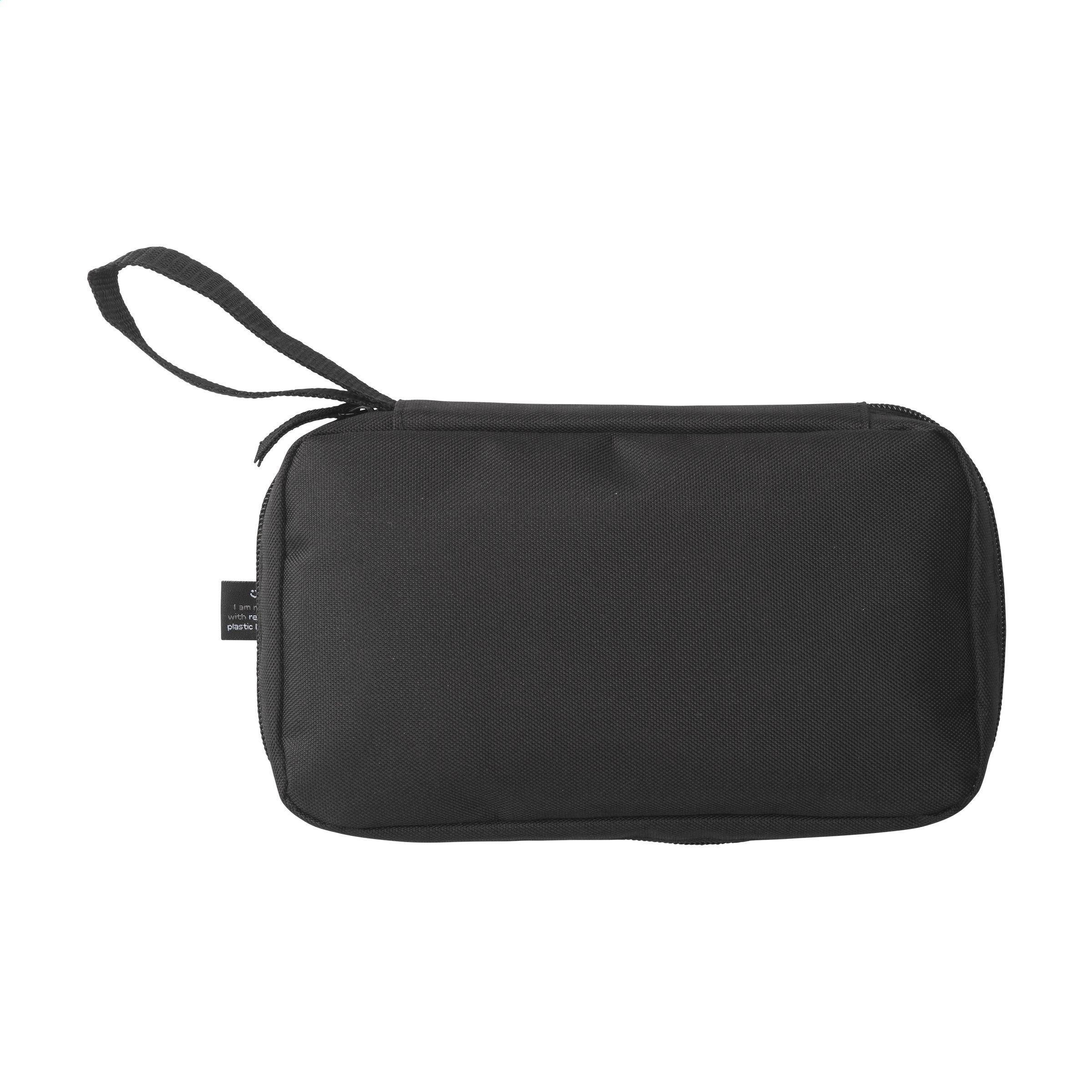 Etui zur geordneten und übersichtlichen Aufbewahrung von Kabeln, Ladegeräten und technischem Zubehör. Hergestellt aus 600D RPET-Polyester. Das Innere bietet reichlich Stauraum, unterteilt in mehrere (Netz-)Fächer. Mit Reißverschluss, einer zusätzlichen Reißverschlusstasche an der Außenseite und einer praktischen Trageschlaufe. Ideal für Reisen, aber auch praktisch für zu Hause oder im Büro. GRS-zertifiziert. Gesamtes recyceltes Material: 88%.