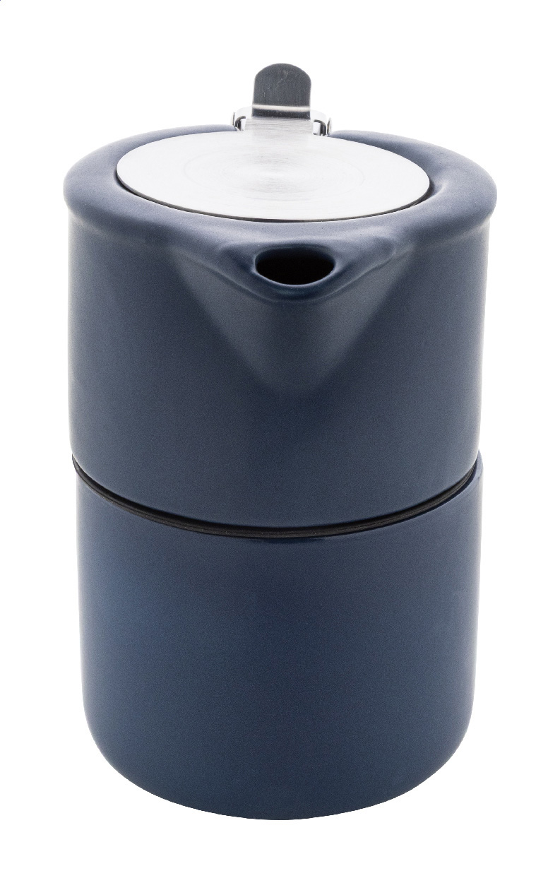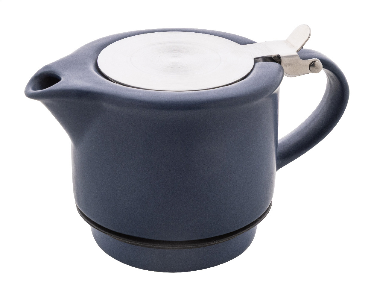 Hochwertiges Teeservice aus Keramik mit matter Oberfläche. Enthält eine Teekanne (430 ml) mit Edelstahldeckel und Teesieb, die sich perfekt auf die passende Tasse (400 ml) stapeln lässt. Einzeln in einer Kraftpapierbox.