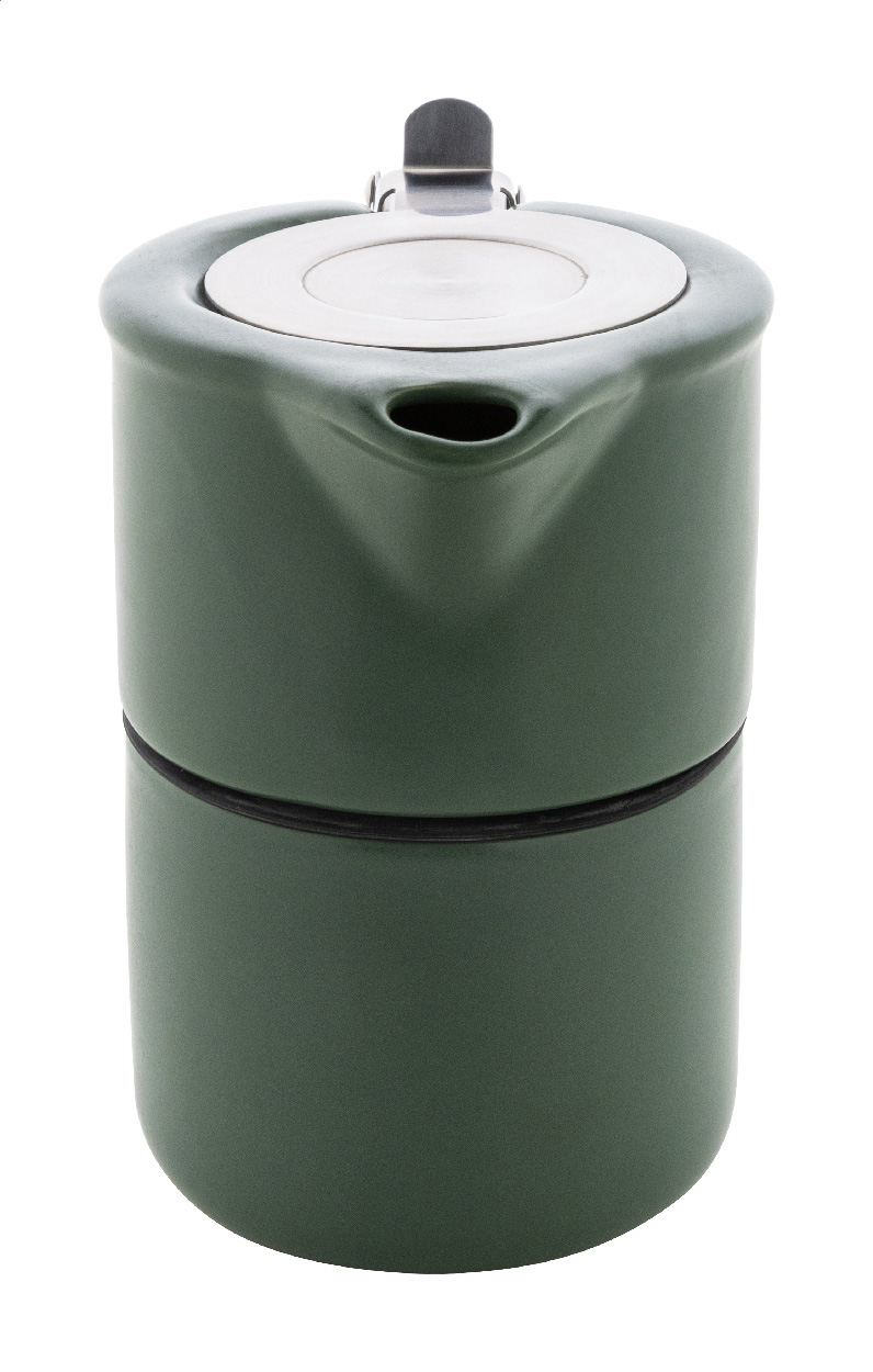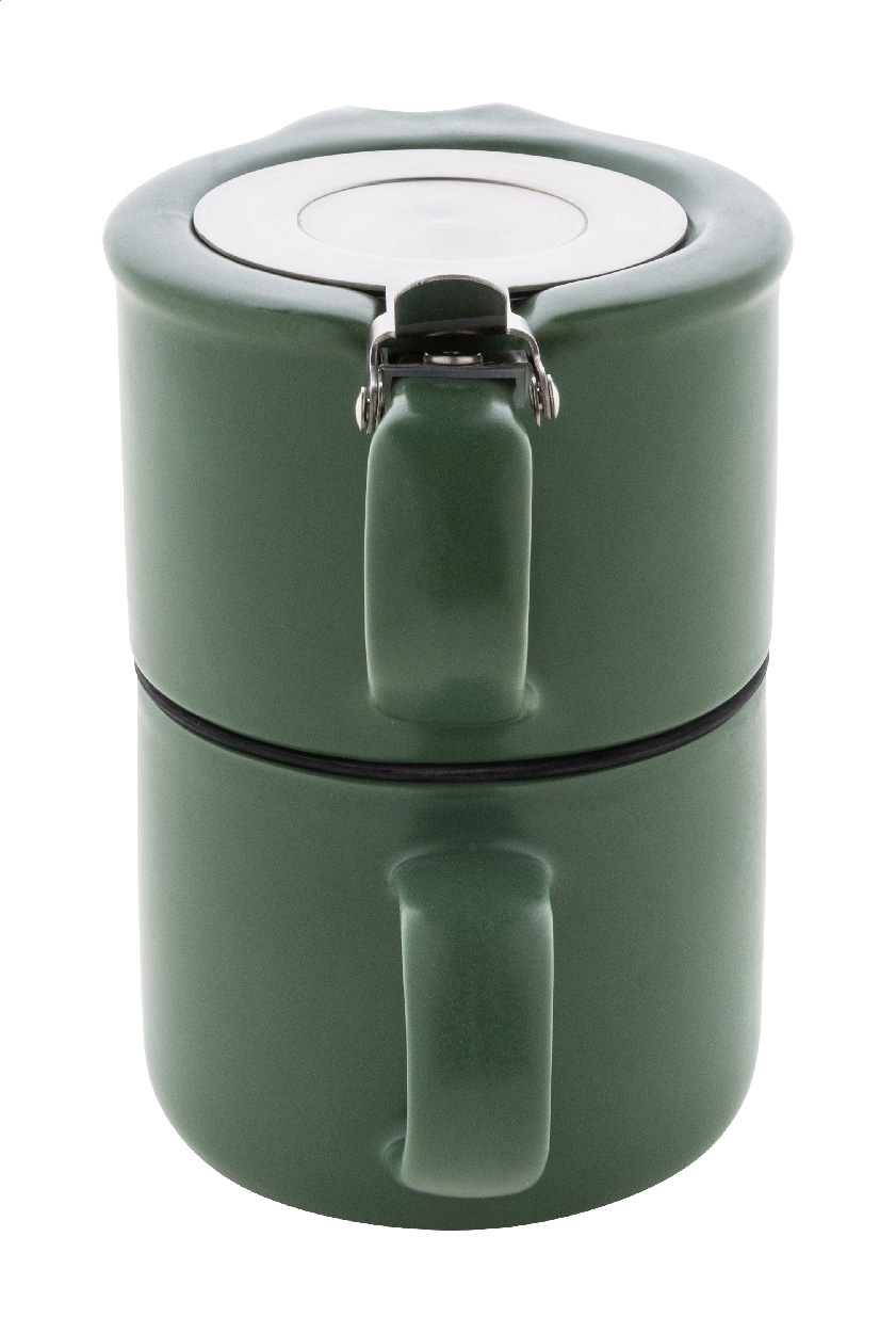 Hochwertiges Teeservice aus Keramik mit matter Oberfläche. Enthält eine Teekanne (430 ml) mit Edelstahldeckel und Teesieb, die sich perfekt auf die passende Tasse (400 ml) stapeln lässt. Einzeln in einer Kraftpapierbox.