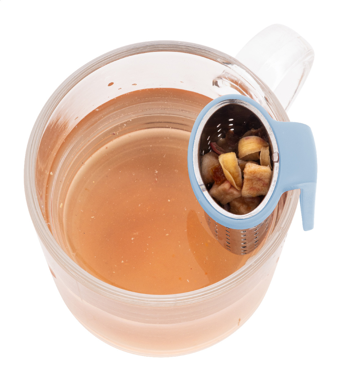 Teesieb aus Edelstahl mit praktischem Cliphalter aus recyceltem ABS. Zum einfachen Befestigen am Tassenrand.