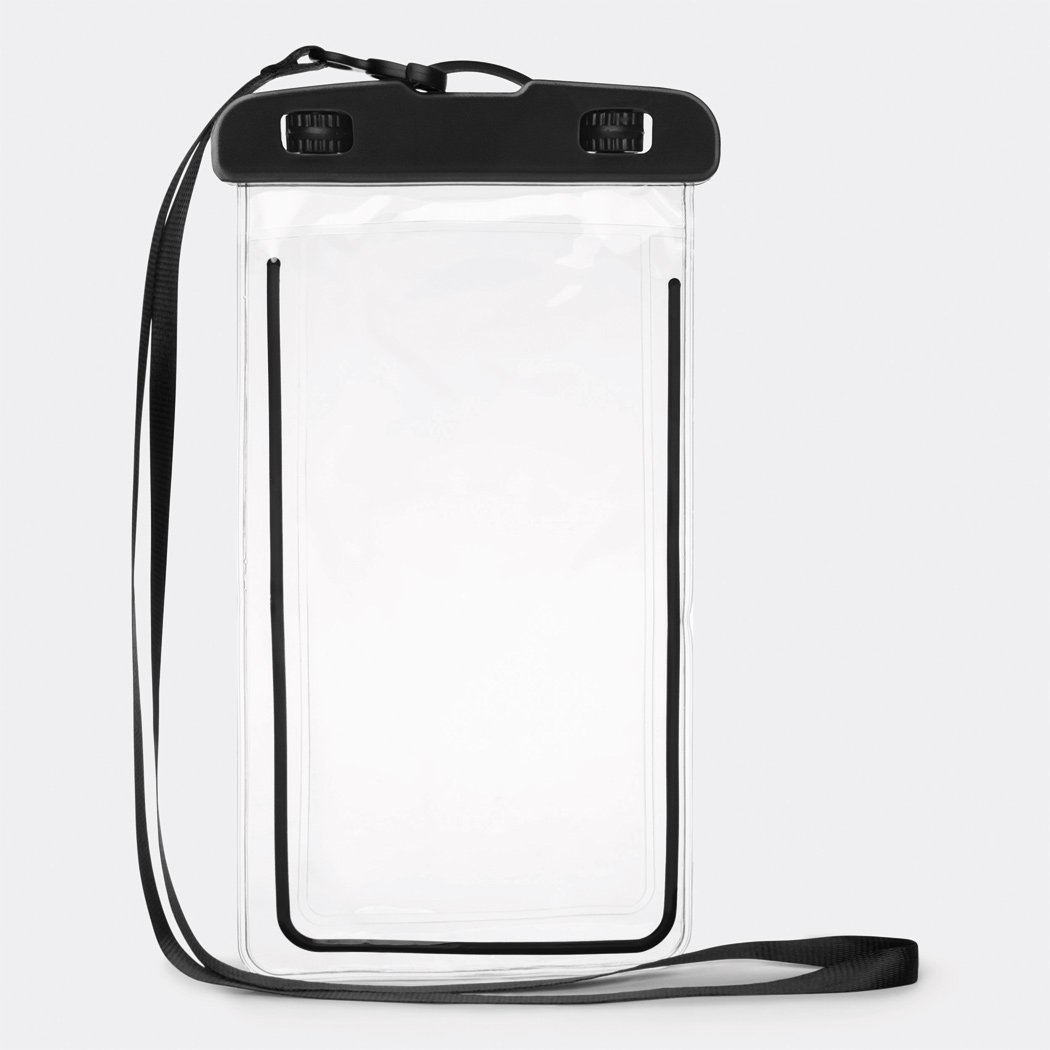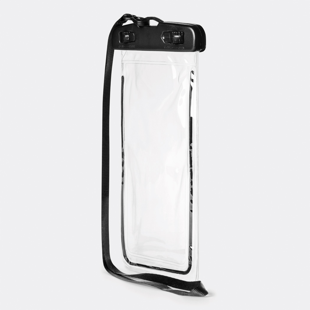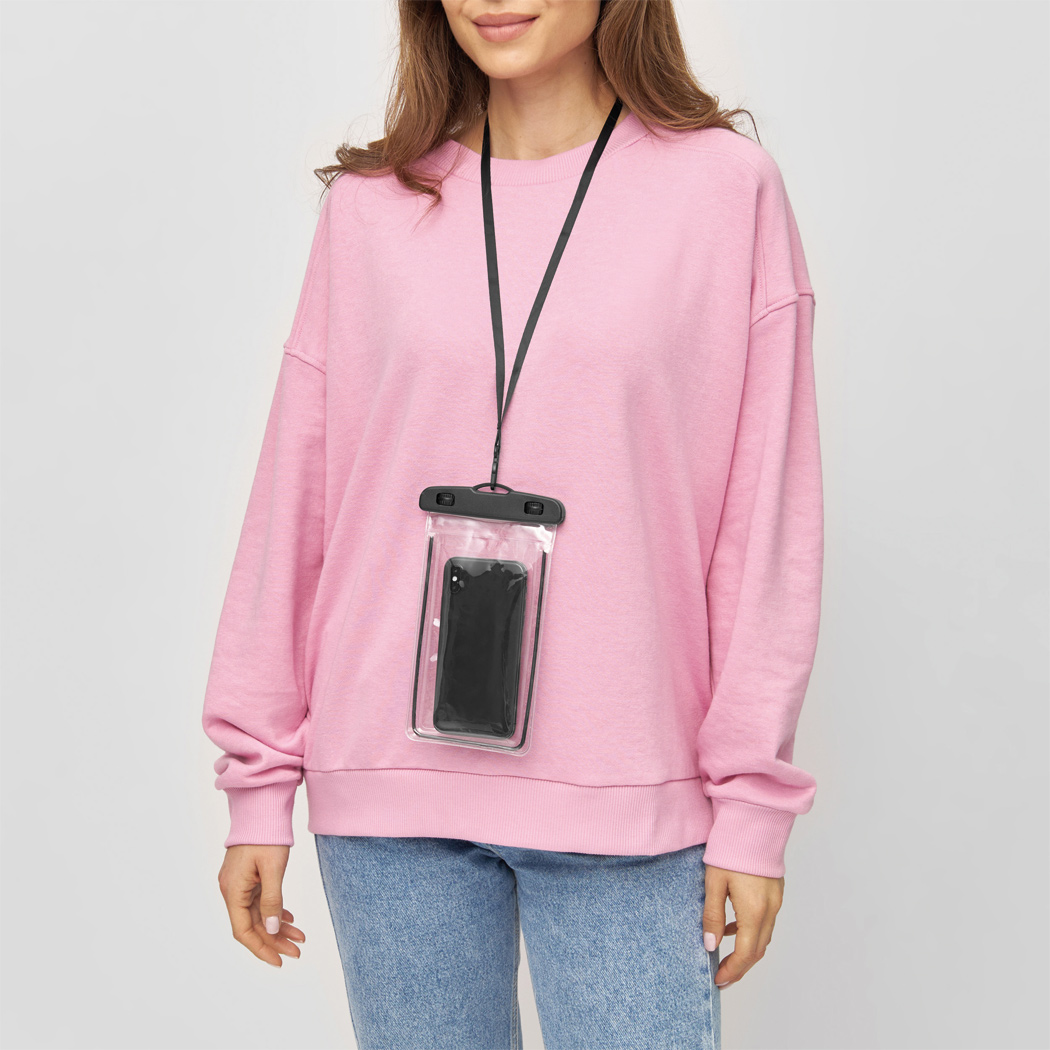 Telefon-Tasche DIVER, spritzwassergeschützt: mit sicherem Verschluss, umlaufende Streifen leuchten im Dunkeln, mit schwarzem Unhängeband (ca. 43 cm) - ideal für Strand und Badesee zum Verstauen von Smartphone, Portemonnaie sowie anderen Wertgegenständen