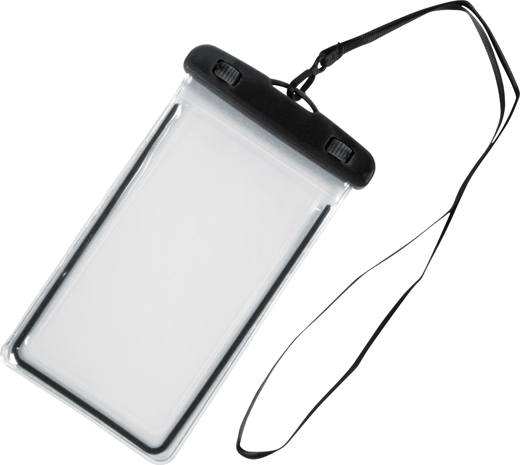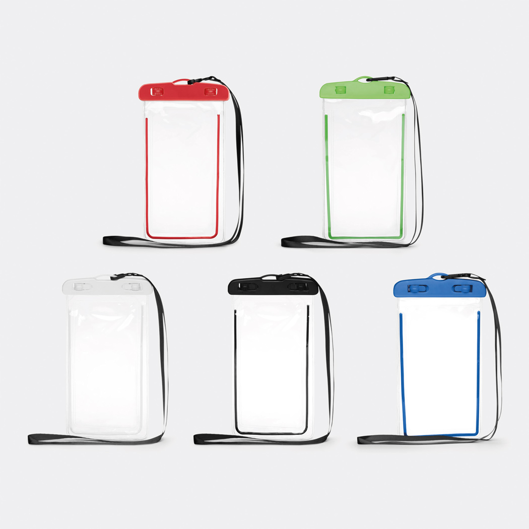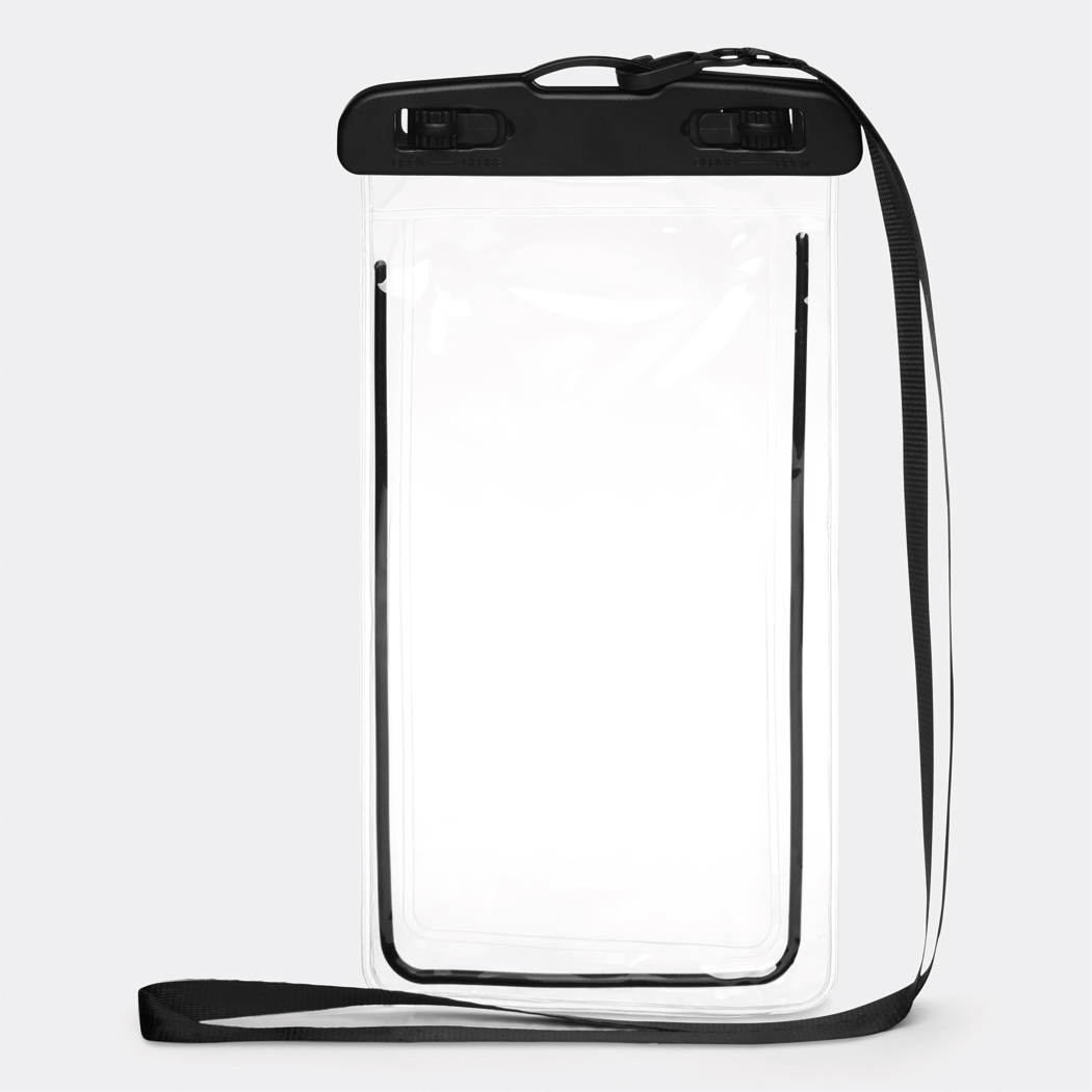 Telefon-Tasche DIVER, spritzwassergeschützt: mit sicherem Verschluss, umlaufende Streifen leuchten im Dunkeln, mit schwarzem Unhängeband (ca. 43 cm) - ideal für Strand und Badesee zum Verstauen von Smartphone, Portemonnaie sowie anderen Wertgegenständen