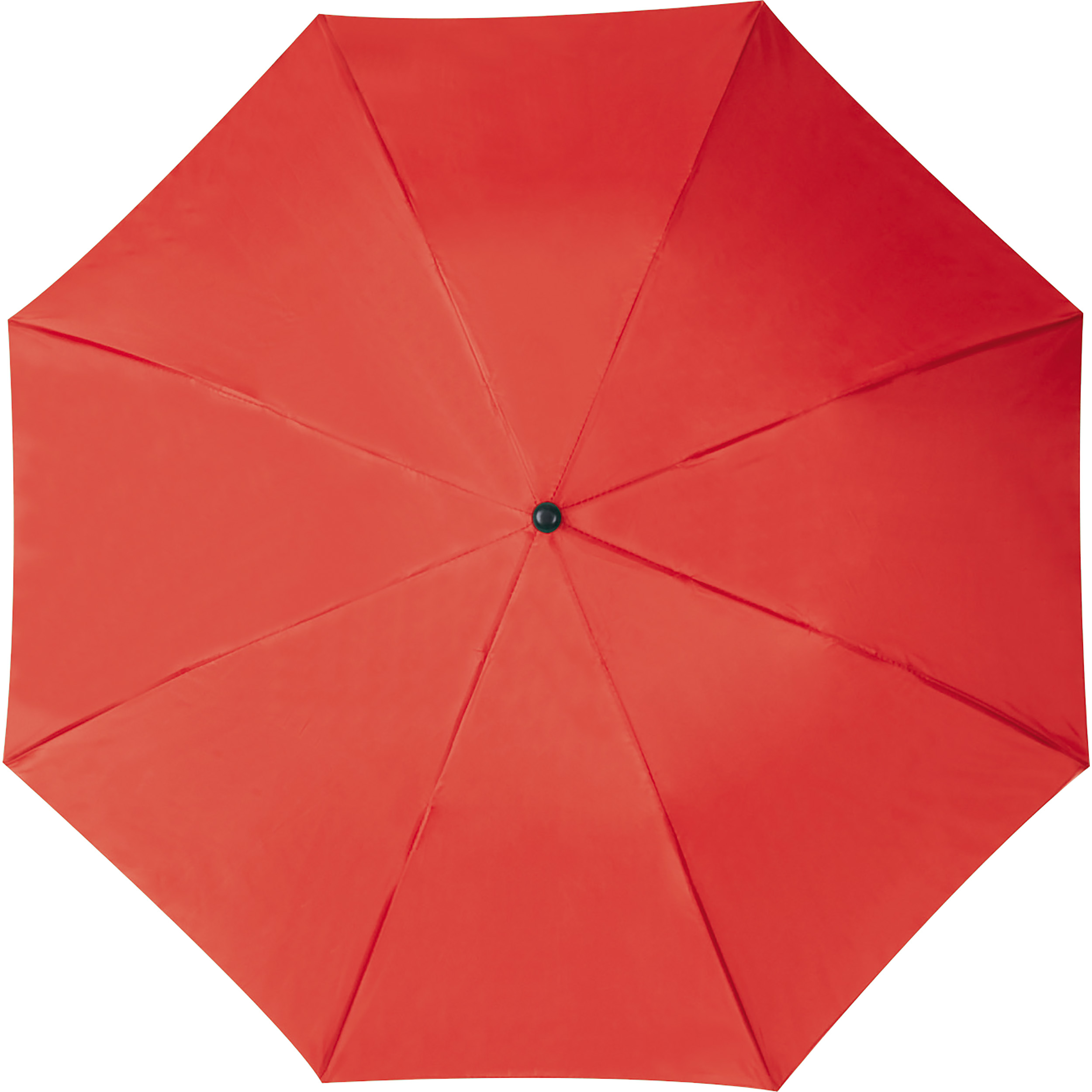 Manuell zu öffnender Teleskop Taschenschirm aus Polyester mit Schutzhülle. Ihre Werbung drucken wir auf den unteren Teil eines Segments.