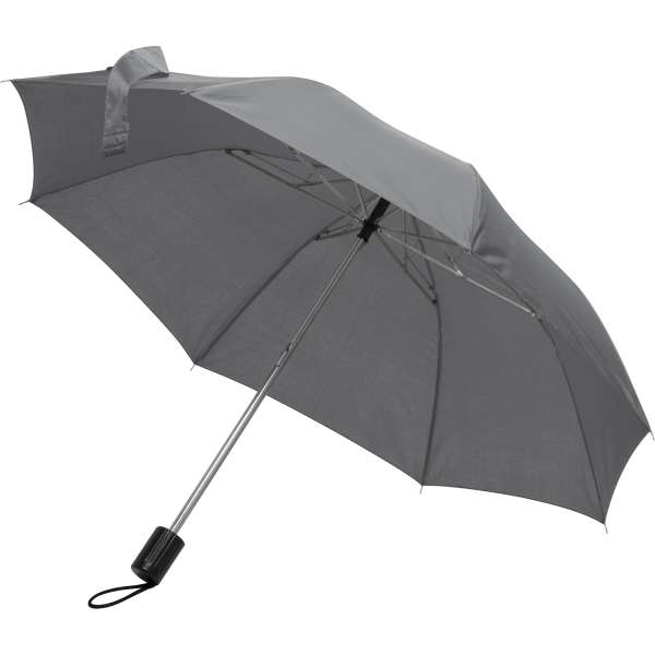Manuell zu öffnender Teleskop Taschenschirm aus Polyester mit Schutzhülle. Ihre Werbung drucken wir auf den unteren Teil eines Segments.