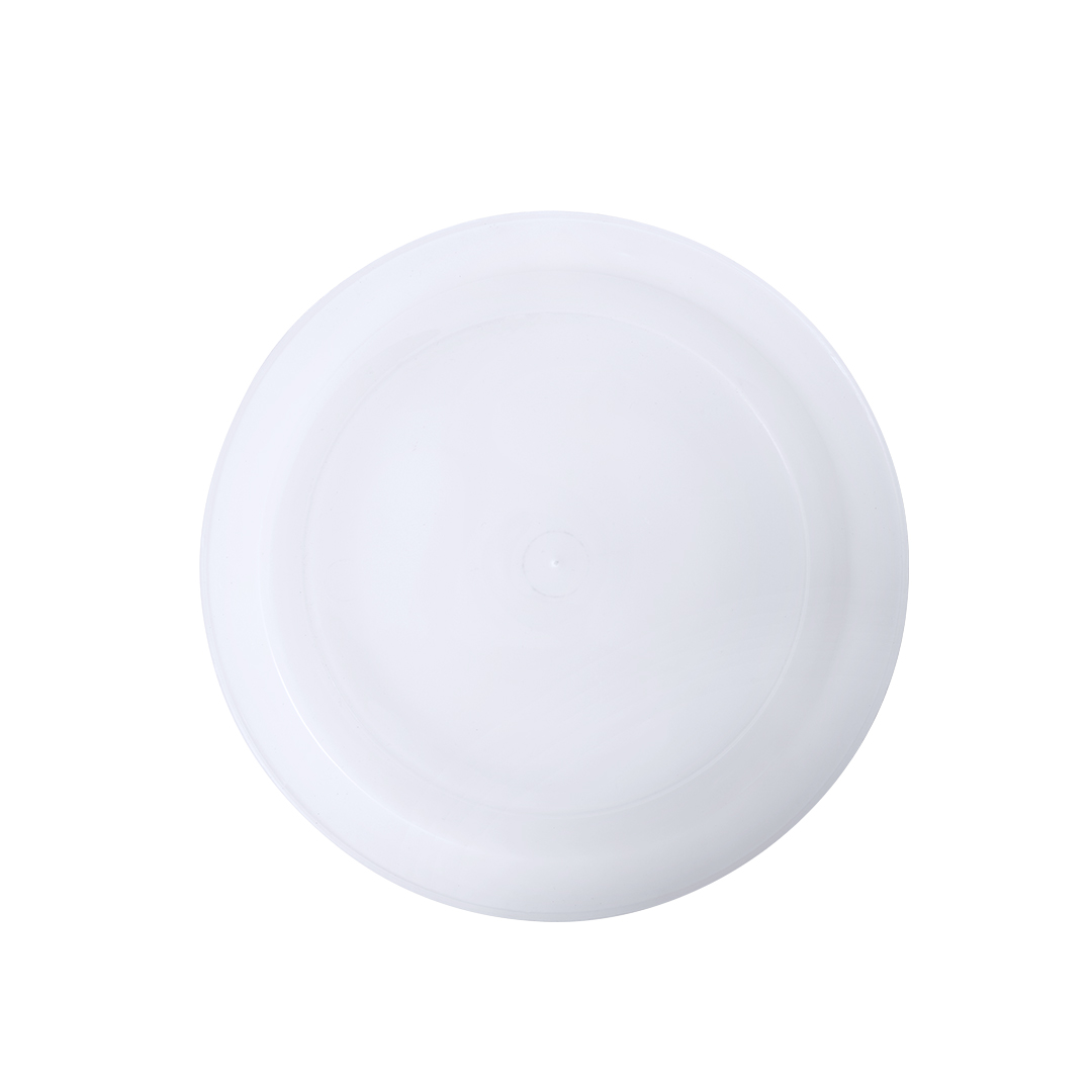 Flache Schale aus starkem und flexiblem PP-Material. Runde Form, wiederverwendbar und in transparenter Ausführung.