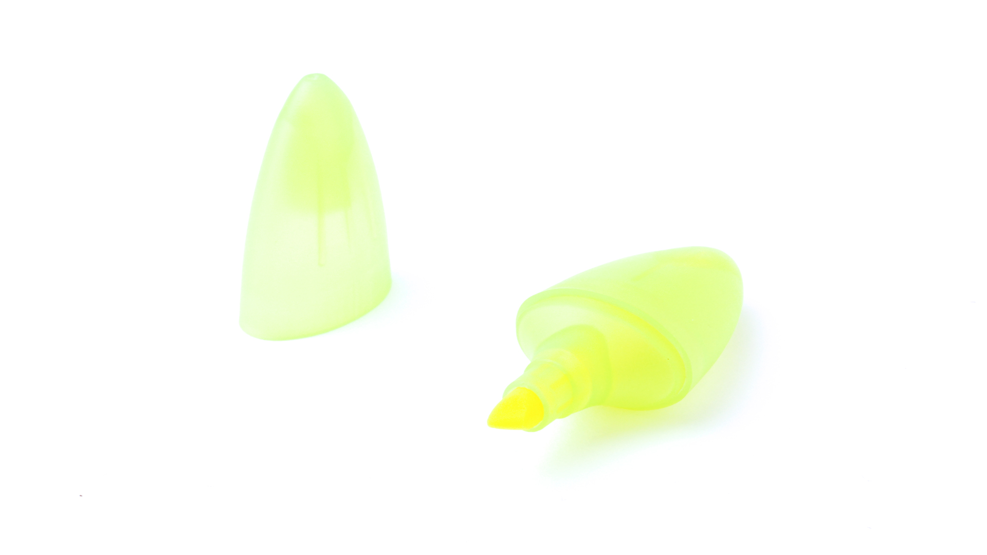 Textmarker mit minimalistischem Design in lebhaften Farben. Mit ovalem, transparentem Gehäuse mit Kappe.