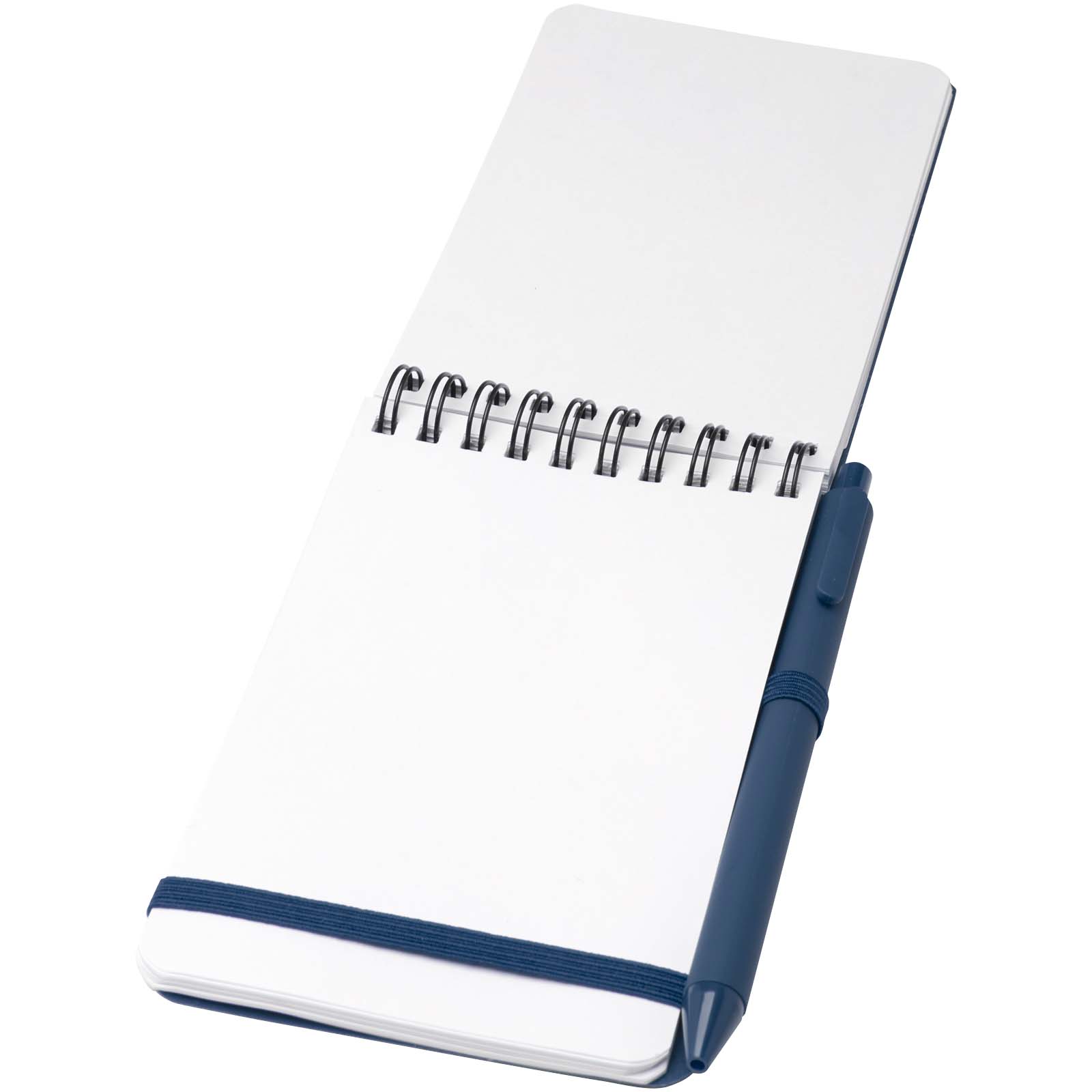 Das Thalaasa A6 Hardcover Notizbuch besteht aus recyceltem ozeangebundenem Kunststoff und umfasst 80 Blatt, liniert, aus cremefarbenem 70 g / m² Papier. Das Notizbuch hat abgerundete Ecken. Es ist mit einem elastischen Verschluss und einer Stiftschlaufe ausgestattet. Der Kugelschreiber mit schwarzer Tinte ist ebenfalls aus recyceltem, ozeangebundenem Kunststoff hergestellt. Schreiblänge: 1000 Meter. Spitzengröße: 1,0 mm.