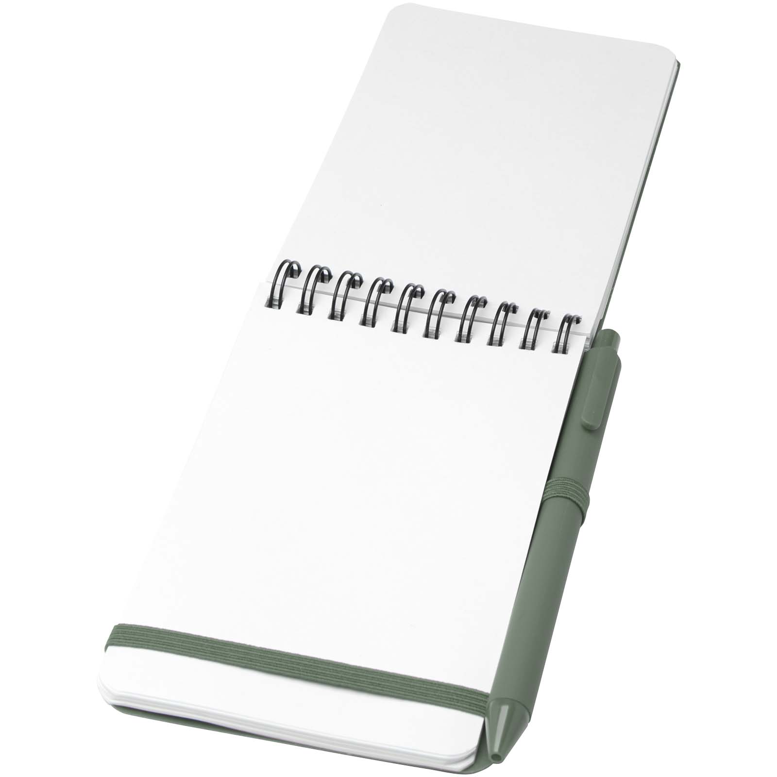 Das Thalaasa A6 Hardcover Notizbuch besteht aus recyceltem ozeangebundenem Kunststoff und umfasst 80 Blatt, liniert, aus cremefarbenem 70 g / m² Papier. Das Notizbuch hat abgerundete Ecken. Es ist mit einem elastischen Verschluss und einer Stiftschlaufe ausgestattet. Der Kugelschreiber mit schwarzer Tinte ist ebenfalls aus recyceltem, ozeangebundenem Kunststoff hergestellt. Schreiblänge: 1000 Meter. Spitzengröße: 1,0 mm.