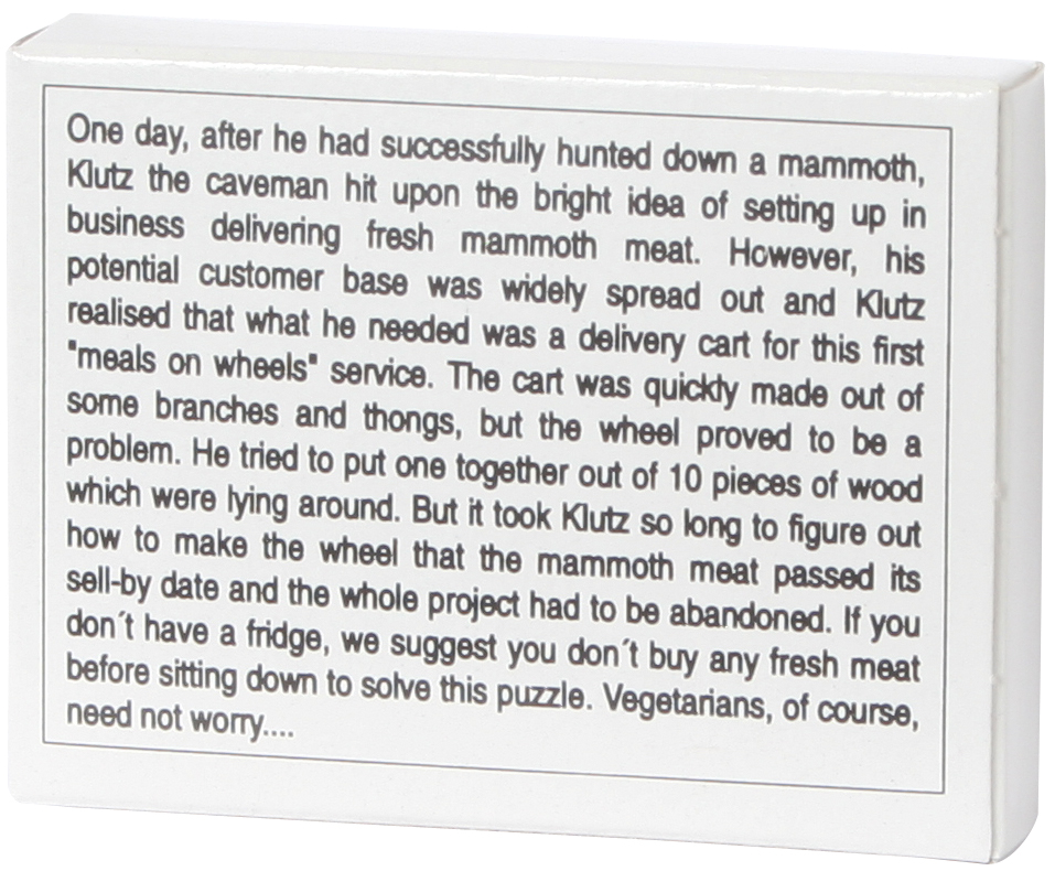 Ein Neandertaler gründete einen Partyservice. Um seine Mammutspezialitäten liefern zu können, brauchte er einen Wagen. Bauen Sie das Rad aus zehn Teilen dazu!