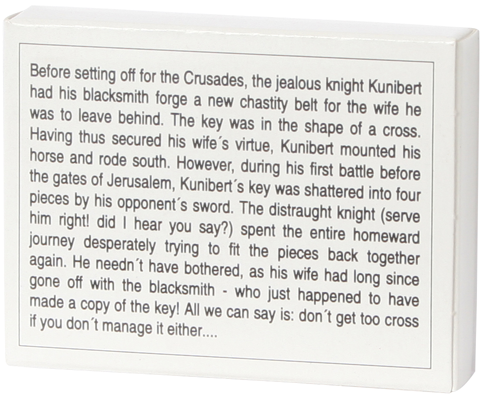 Bei einem Kreuzzug zerbrach dem Ritter Kunibert der Kreuzschlüssel für den Keuschheitsgürtel seiner Frau in vier Teile. Hilfe!!!
