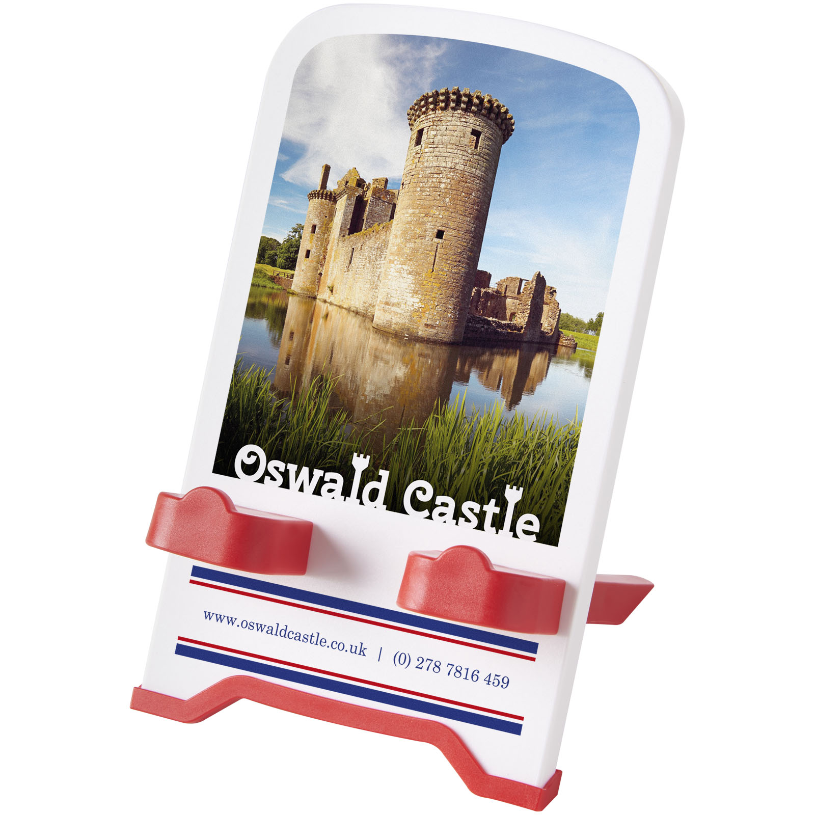 Dieser Smartphone Halter ist ein unverzichtbares Schreibtischzubehör und ideal für alle, die von zu Hause aus arbeiten. Mit diesem praktischen Produkt ist das Telefon immer in der Nähe und bereit für Videoanrufe, das Anschauen von Videos oder einfach nur, um sich über soziale Medien zu unterhalten. Die weiße Rückwand besteht aus recyceltem Kunststoff und die Station ist so konzipiert, dass das Gerät aufgeladen werden kann, während es sich in der Station befindet. Wird flach verpackt in einem Geschenkkarton geliefert und ist durch sein niedriges Profil ideal für den Postversand. Hergestellt in UK.