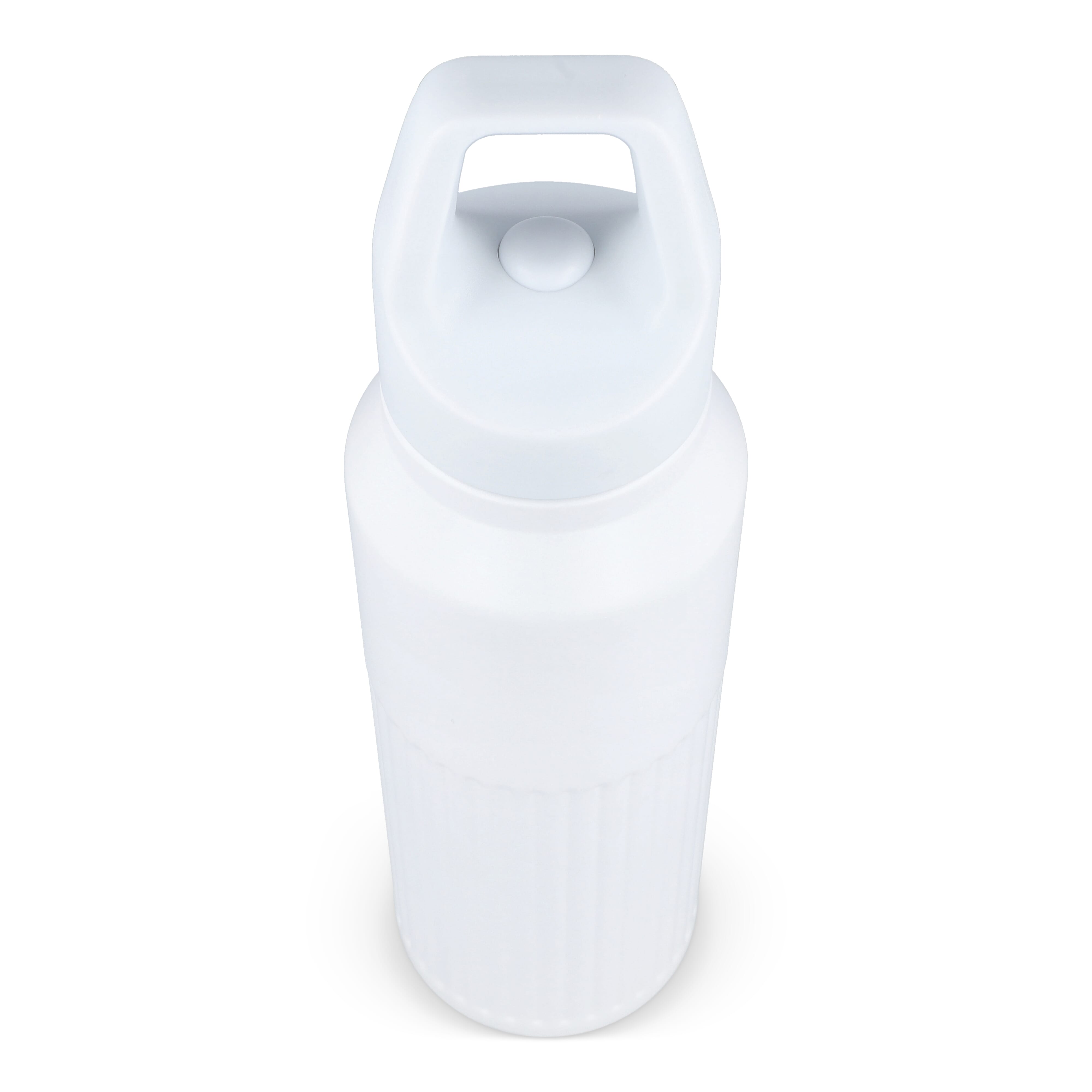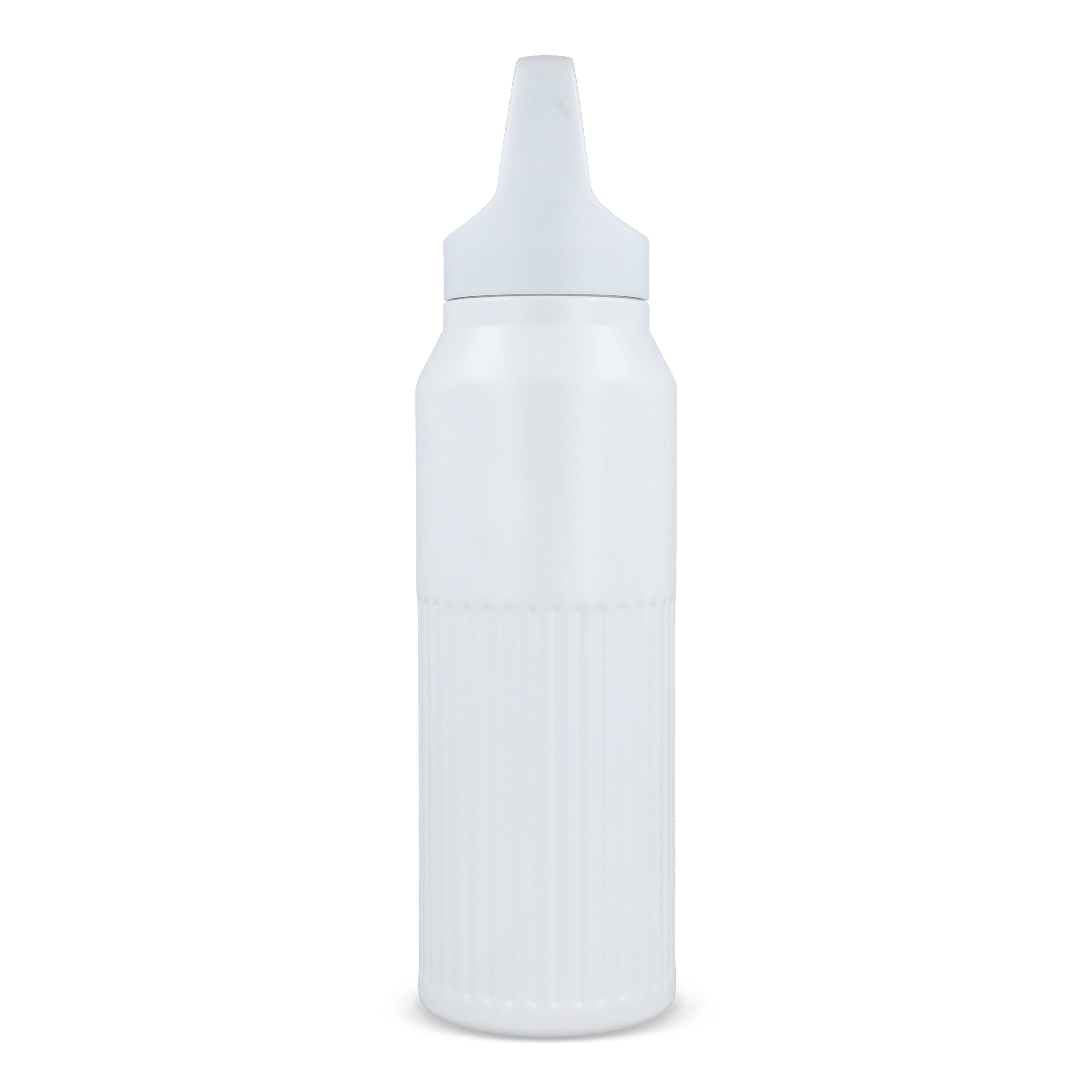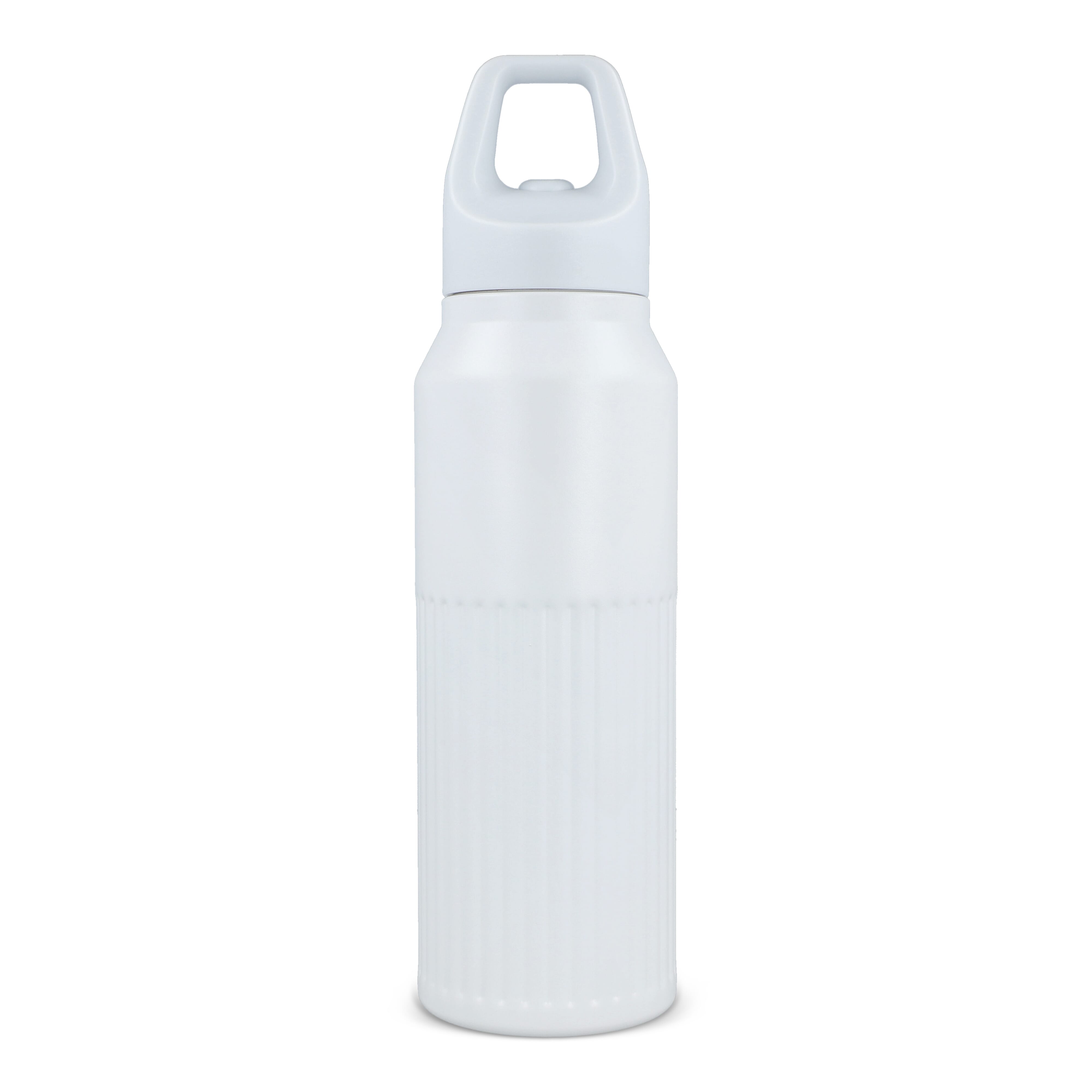 Robuste Edelstahl-Isolierflasche mit einem Fassungsvermögen von 500 ml und einem Easy-Click-Deckel. Die Flasche hat ein modernes Streifenmuster. Heiße Getränke bleiben 8 Stunden lang heiß und kalte Getränke 24 Stunden lang kalt. Einzeln verpackt in einer Geschenkbox.