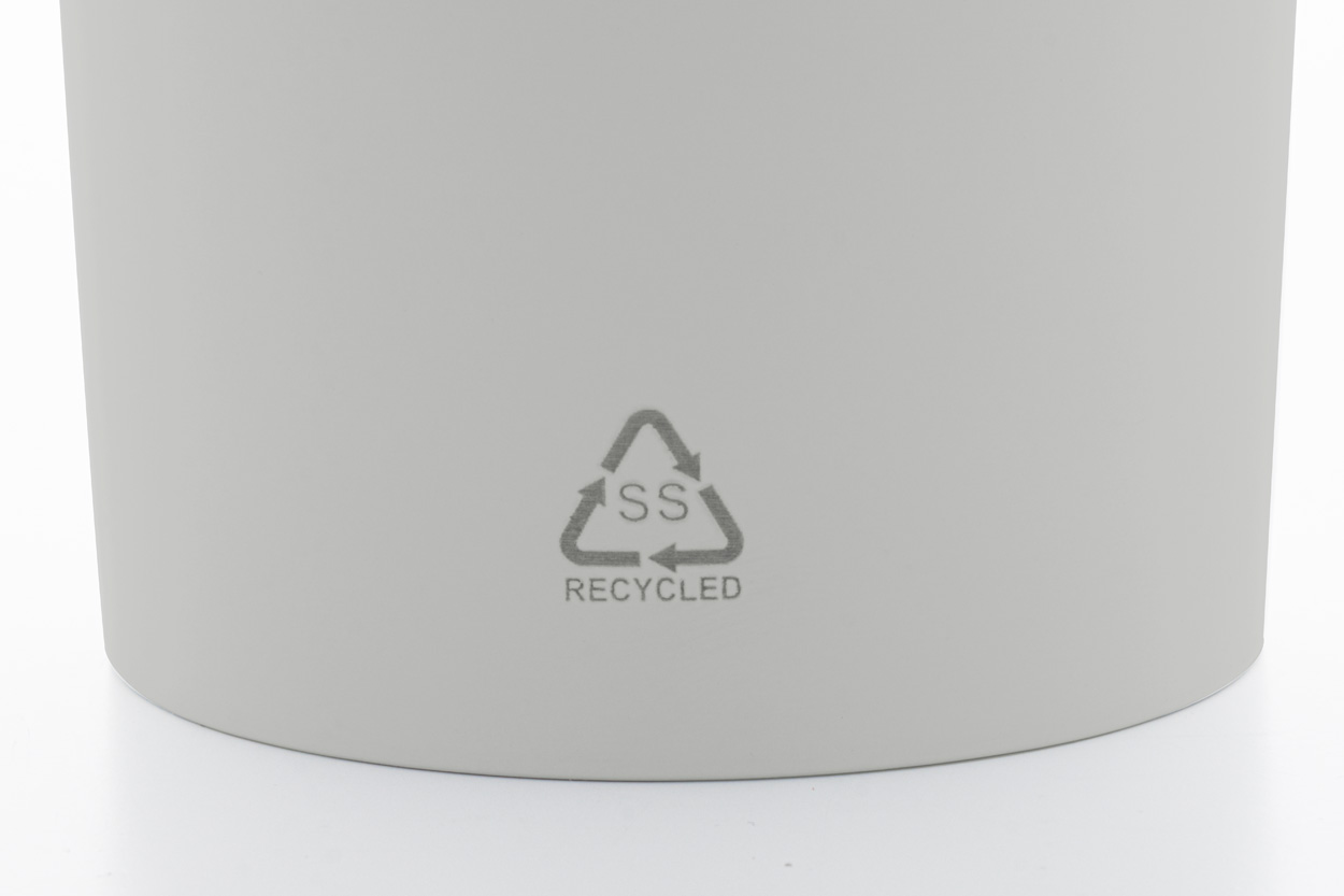 Recycelter Edelstahl, Kunststoff (PS)