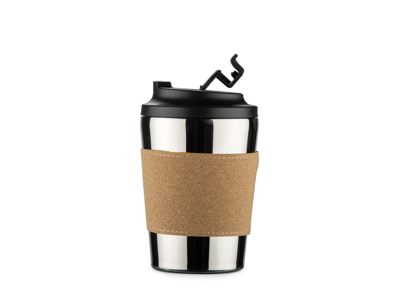 Der 350-ml-Thermobecher von CAFFEZ kombiniert eine glänzende Stahloberfläche mit einem natürlichen Korkband zu einem eleganten und modernen Kaffeehelfer. Der Innenraum aus Edelstahl mit Skaleneinteilung erleichtert das Abmessen Ihres Getränks, und das doppelwandige Design hält die Temperatur bis zu 3 Stunden lang. Der Flip-Top-Deckel mit einer Klappe, die sich von oben öffnen lässt, ist praktisch für unterwegs oder im Büro. Der rutschfeste Boden erhöht die Stabilität auf glatten Oberflächen. Für Marken, die Wert auf Ästhetik, Qualität und Funktionalität in einem legen.