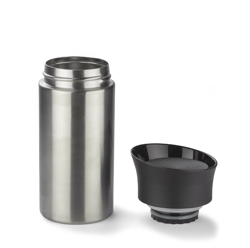 Der Becher EDDY ist aus Stahl hergestellt. Es hat einen sehr bequemen Kunststoffverschluss mit einem Klicksystem, der für Dichtheit sorgt und das Trinken von allen Seiten ermöglicht . Der Innenraum besteht aus Edelstahl mit einem höheren Standard. Das Fassungsvermögen von 300 ml ist perfekt. Hält die Temperatur bis zu 13 Stunden.