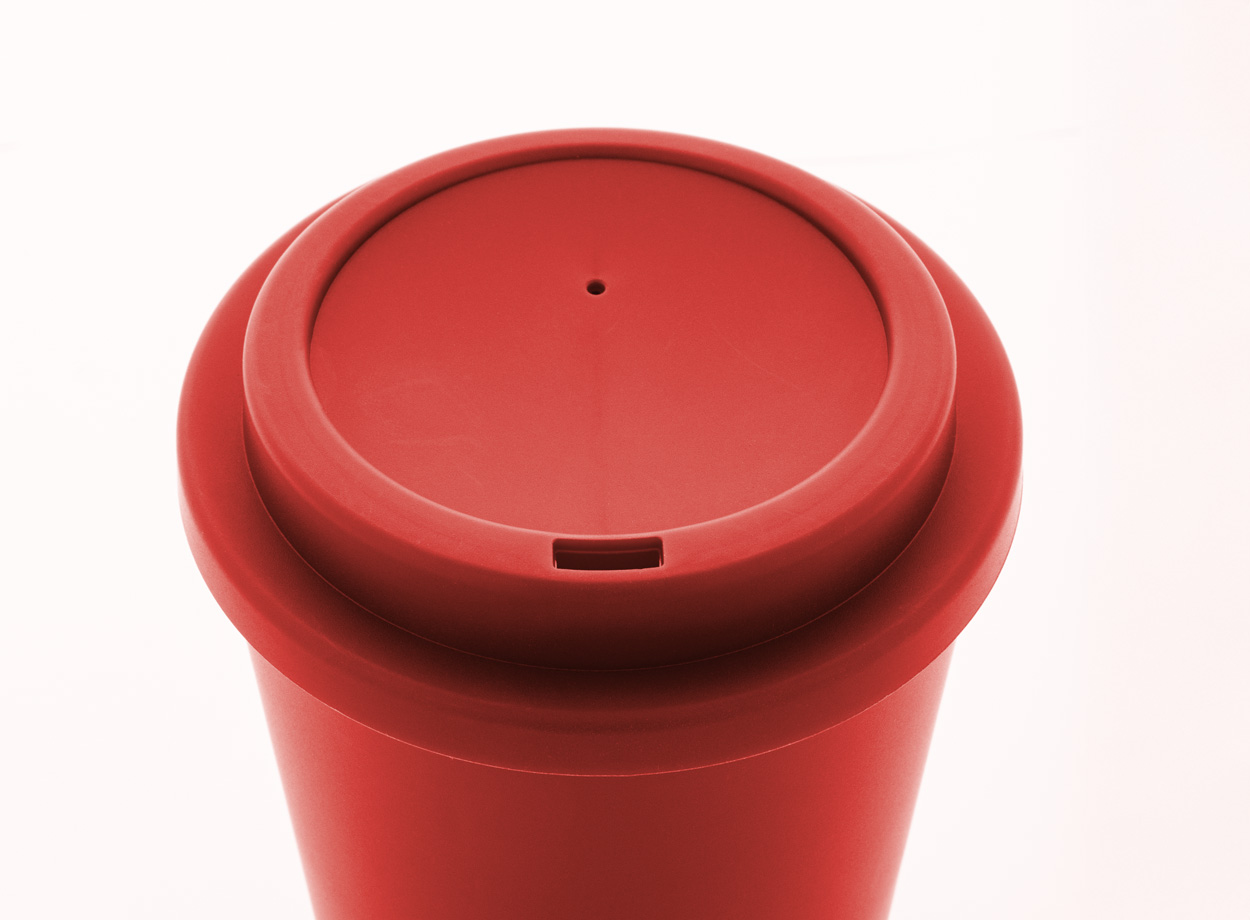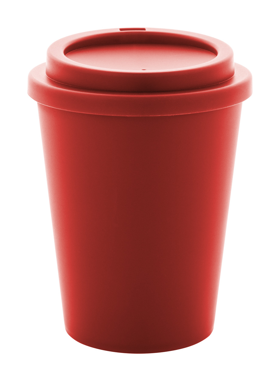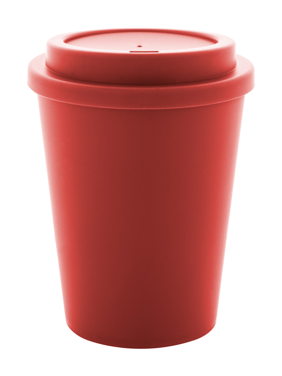Doppelwandiger, isolierter Thermobecher aus PP-Kunststoff mit Trinkdeckel. Füllmenge: 300 ml.
