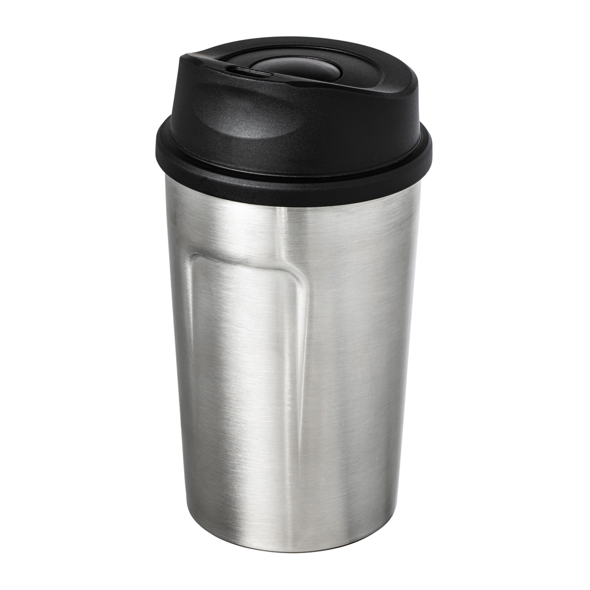 Dieser doppelwandige Vakuum Isolierbecher ist optisch den klassischen Coffee-to-Go Bechern nachempfunden. Die Außenseite ist pulverbeschichtet und bietet neben einer dadurch sehr angenehmen Haptik, zudem noch eine erhöhte Kratz- und Stoßfestigkeit. Der Deckel verfügt über einen Druckverschluss. Die Füllmenge beträgt 380 ml – Ideal für den großen Kaffee für den Start in den Tag.
